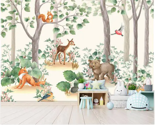 Papel de parede Animais da floresta num cenário caprichoso Papel de parede Animais da floresta num cenário caprichoso