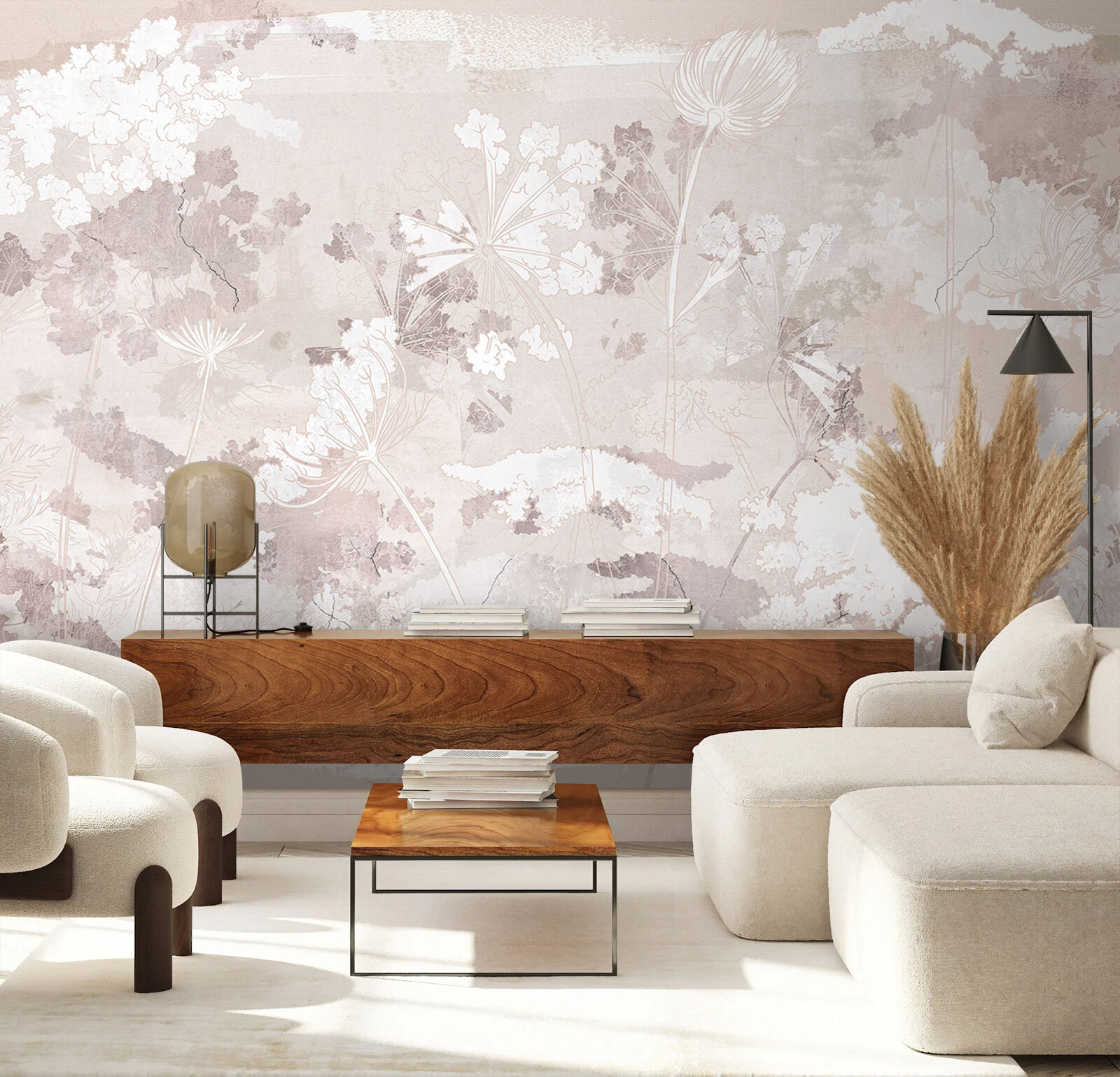 Transforme qualquer espaço num oásis sereno com este mural de parede com um delicado padrão floral branco e cinzento. Imagine entrar numa sala que parece tão calma como uma brisa sussurrante, onde pétalas suaves parecem dançar na parede. É perfeito para aqueles cantos acolhedores onde bebe o seu café da manhã ou se enrosca com um bom livro. Os tons suaves misturam-se lindamente, tornando-o fácil de combinar com qualquer estilo de decoração. Quer se trate de uma sala de estar chique ou de um quarto tranquilo, este mural envolve as suas paredes numa elegância discreta, criando um cenário que parece fresco e convidativo.