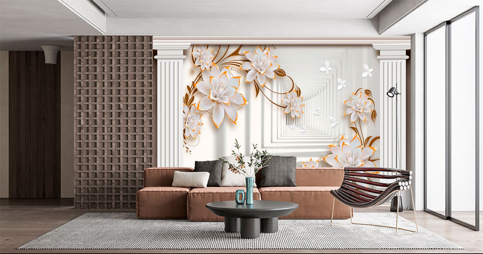 Transforme o seu espaço num paraíso florido com os murais de parede Floral Elegance com pilares arquitectónicos. Imagine isto: entrar numa sala e ser recebido por flores de grandes dimensões que parecem dançar através das paredes, atraindo-o com o seu encanto delicado. O fundo suavemente silencioso permite que essas flores se destaquem, tornando-as as estrelas do espetáculo – como se estivessem a disputar a atenção numa festa de jardim.