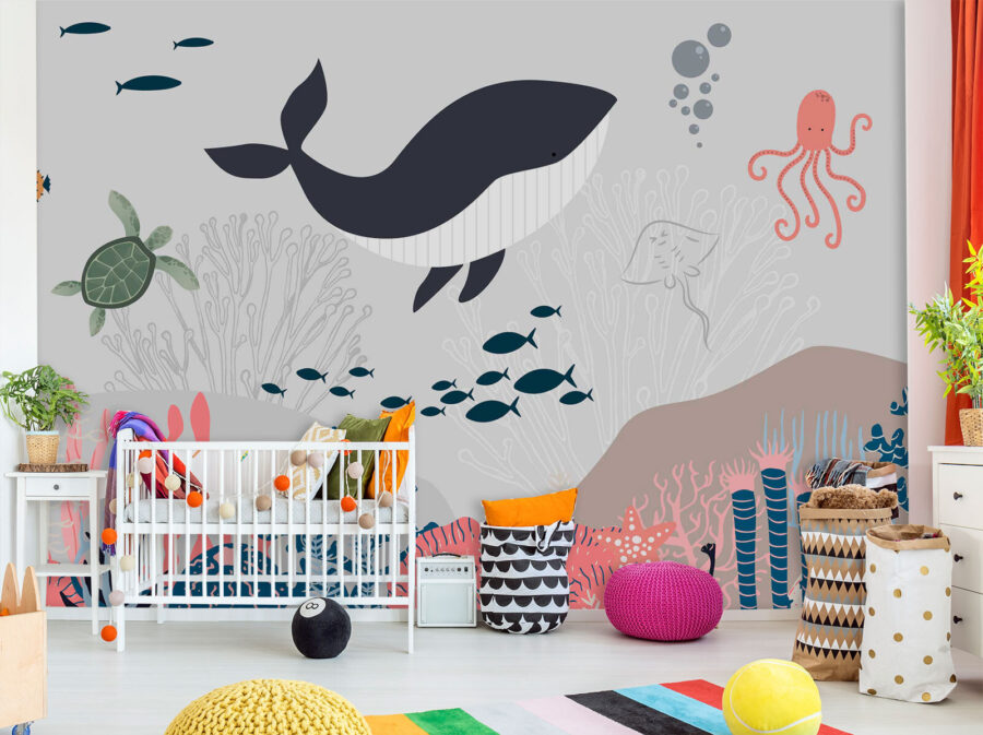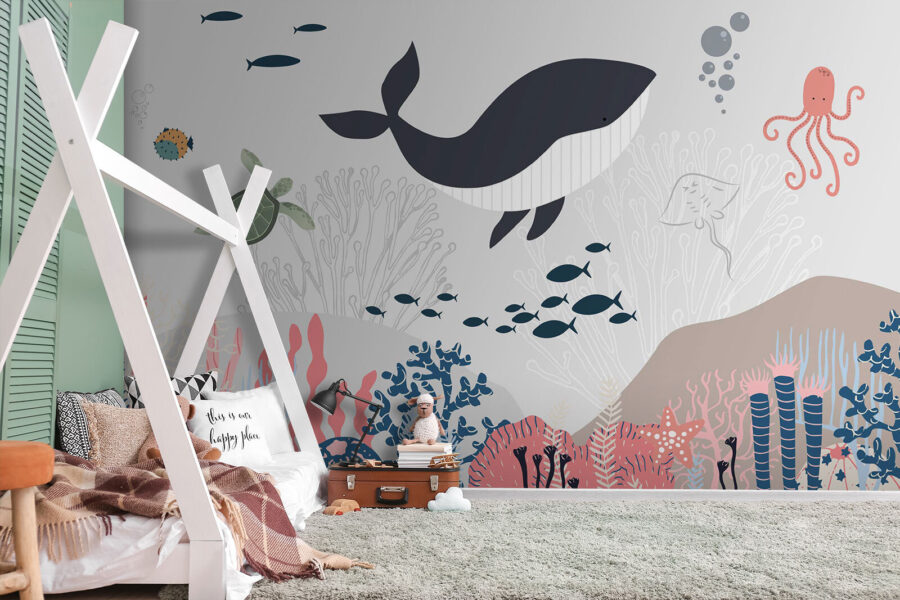 Quer dar um toque de diversão ao quarto do seu filho? Veja os “Murais de parede Baleia e tartaruga debaixo de água!” Este mural não é apenas para paredes – é uma aventura no fundo do mar, mesmo na sua própria casa. Imagine uma baleia alegre e uma tartaruga curiosa, nadando juntas num mundo subaquático colorido. É perfeito para despertar a imaginação dos mais pequenos e criar histórias para adormecer sobre aventuras no oceano. Para além disso, não é demasiado movimentado ou brilhante – apenas uma paleta suave que acalma e entretém. Imagine os olhos do seu filho a brilharem quando vêem o polvo ou o cardume de peixes! É como ter um aquário sem a manutenção. Um toque encantador e caprichoso para qualquer quarto ou sala de jogos. Mergulhe neste mural e deixe a magia subaquática começar!