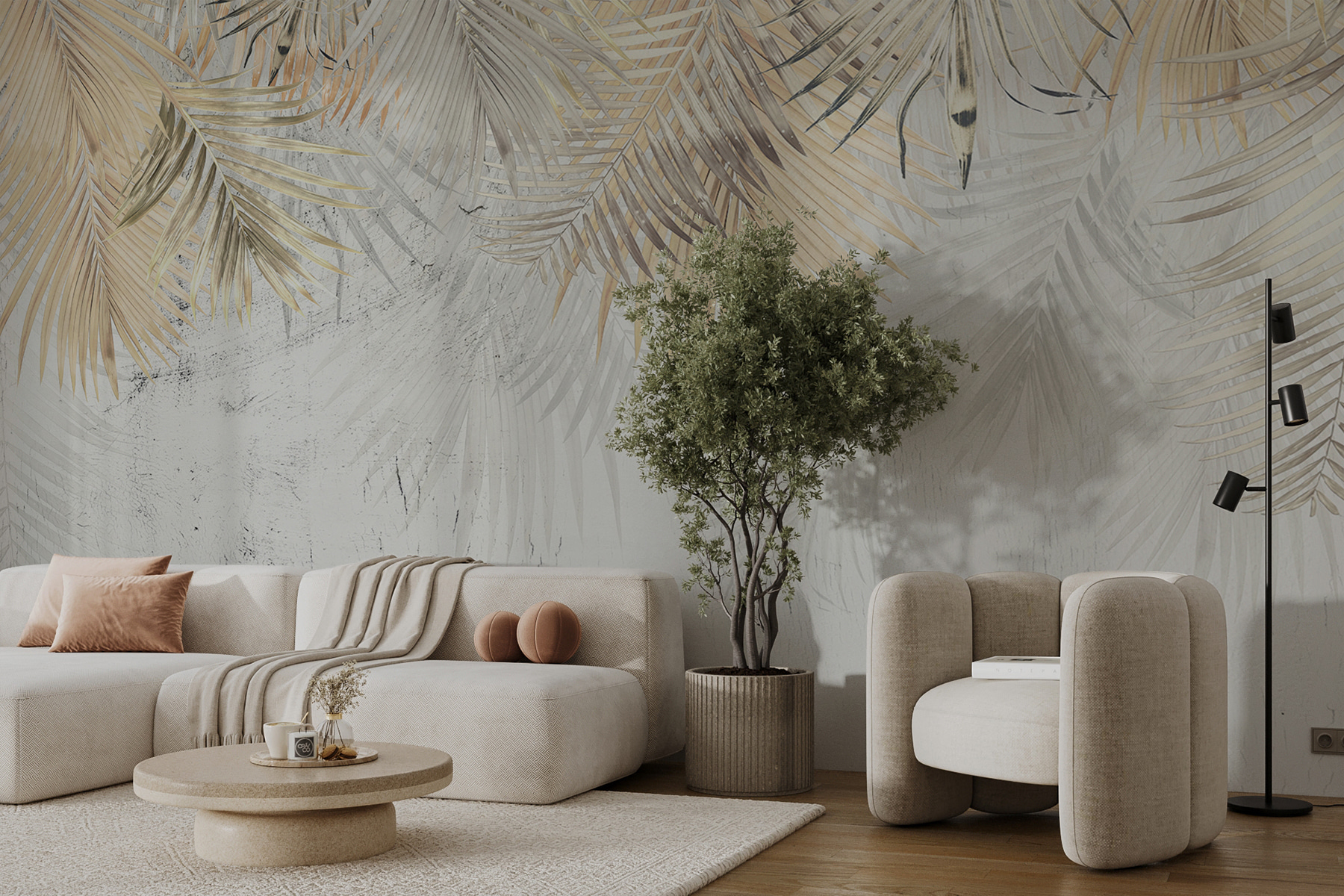 Transforme uma parede sem graça num refúgio tropical com este mural que apresenta elegantes folhas de palmeira à deriva num fundo suave. Imagine entrar numa sala que parece um paraíso banhado pelo sol, onde cada olhar o transporta para uma praia arejada. Os pormenores delicados das folhas acrescentam um toque de encanto, tornando-o perfeito para cantos acolhedores ou espaços de vida vibrantes. É como trazer uma fatia da natureza para dentro de casa sem ter de se preocupar com a rega das plantas. Os convidados vão adorar a vibração descontraída, e talvez dê por si a sonhar acordado com mais frequência. Prepare-se para sentir as vibrações da ilha!