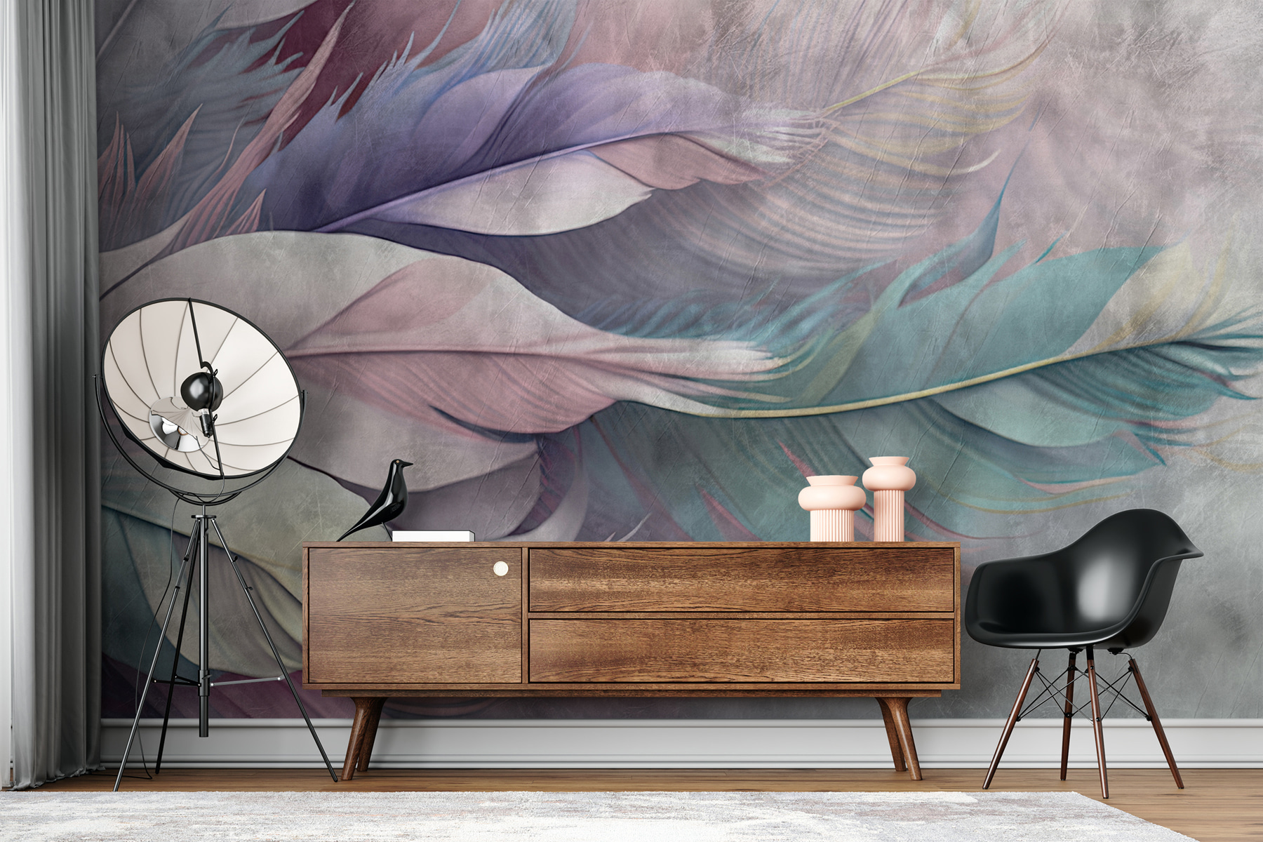 Transforme o seu espaço com este mural de parede com penas coloridas que dançam sobre um fundo suave e sem som. É como se a natureza tivesse trazido um pincel para as suas paredes. Imagine-se a beber café num canto acolhedor, apenas a admirar aqueles tons suaves que parecem mudar com o rosa claro, o azul-petróleo e a lavanda a rodopiarem juntos num abraço de sonho. Este mural não é apenas uma decoração; é um iniciador de conversa, um impulsionador do humor. Quer seja num quarto de dormir ou numa sala de estar animada, estas penas podem inspirar uma sensação de calma ou despertar uma explosão de criatividade. É como uma pequena peça de arte que sussurra à alma. Pendurá-la é como convidar uma brisa encantadora para dentro de casa e, sinceramente, quem não gostaria de ter isso?