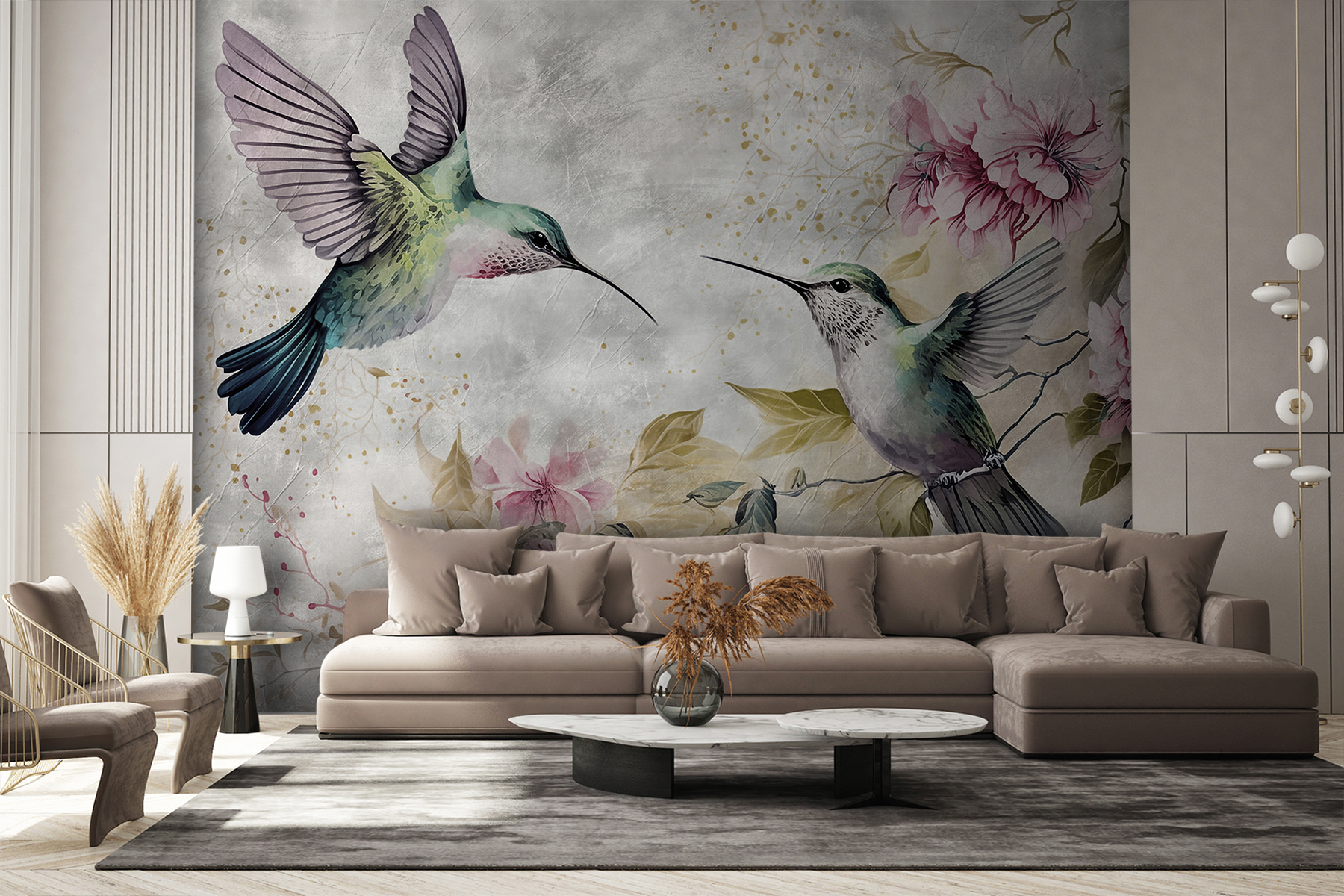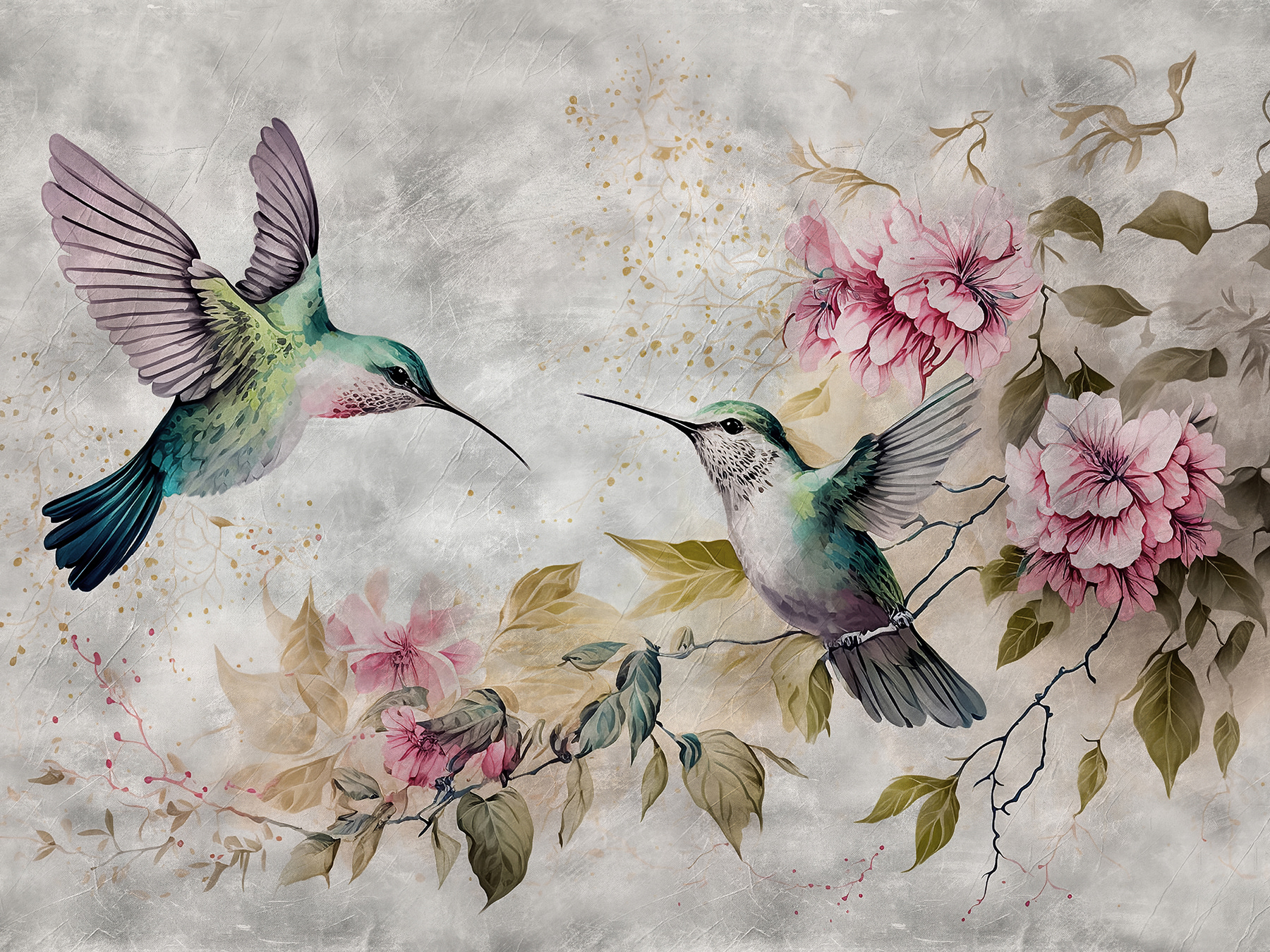 Papel de parede Os colibris dançam entre flores delicadas. (REF: u93994)