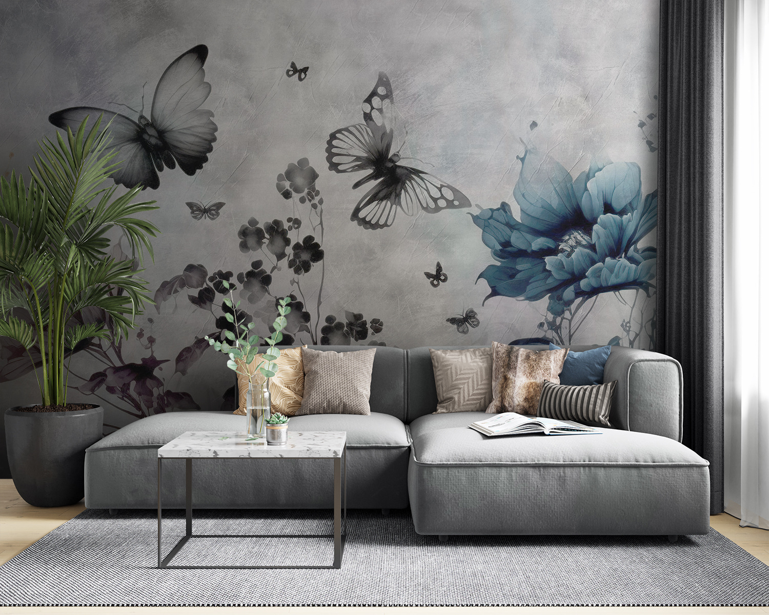 Transforme o seu espaço com este encantador mural de parede com borboletas a dançar no ar. Imagine acordar com estas delicadas criaturas a esvoaçar, acrescentando um toque de charme e capricho ao seu quarto. O design suave da aguarela mistura lindamente tons de azul e cinzento, criando uma atmosfera calma e sonhadora. Imagine um recanto de leitura acolhedor ou um quarto sereno onde este mural pode dar vida às paredes. É como trazer um pequeno pedaço da natureza para dentro de casa – sem os insectos! Este mural não é apenas decoração; é uma dose diária de inspiração, lembrando a todos que devem abraçar a beleza das pequenas coisas. Perfeito para aqueles que adoram um toque único!