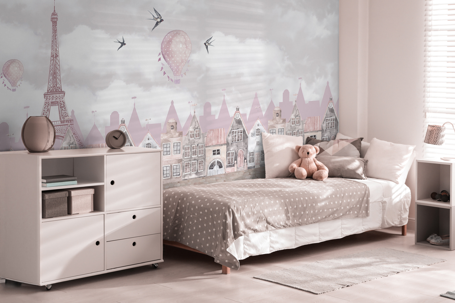 Imagine entrar numa sala e ser saudado pela visão encantadora de pássaros a voar num céu caprichoso, balões de ar quente a flutuar suavemente e telhados encantadores diretamente de um conto de fadas. Este mural de parede “Bird Flying in the Sky” dá vida a essa fantasia. Perfeito para o quarto de uma criança, desperta a imaginação e preenche o espaço com uma sensação de sonho. As cores suaves e pastel e os detalhes delicados fazem dele não apenas um mural, mas uma história em que se pode entrar. Há algo de tão calmante em observar estes passarinhos, é como uma brisa suave para a alma. Além disso, quem não gostaria de ter um toque de magia nas suas paredes? Este mural é uma mistura deliciosa de elegância e diversão – ideal para criar uma atmosfera acolhedora e encantadora no quarto de qualquer filha.