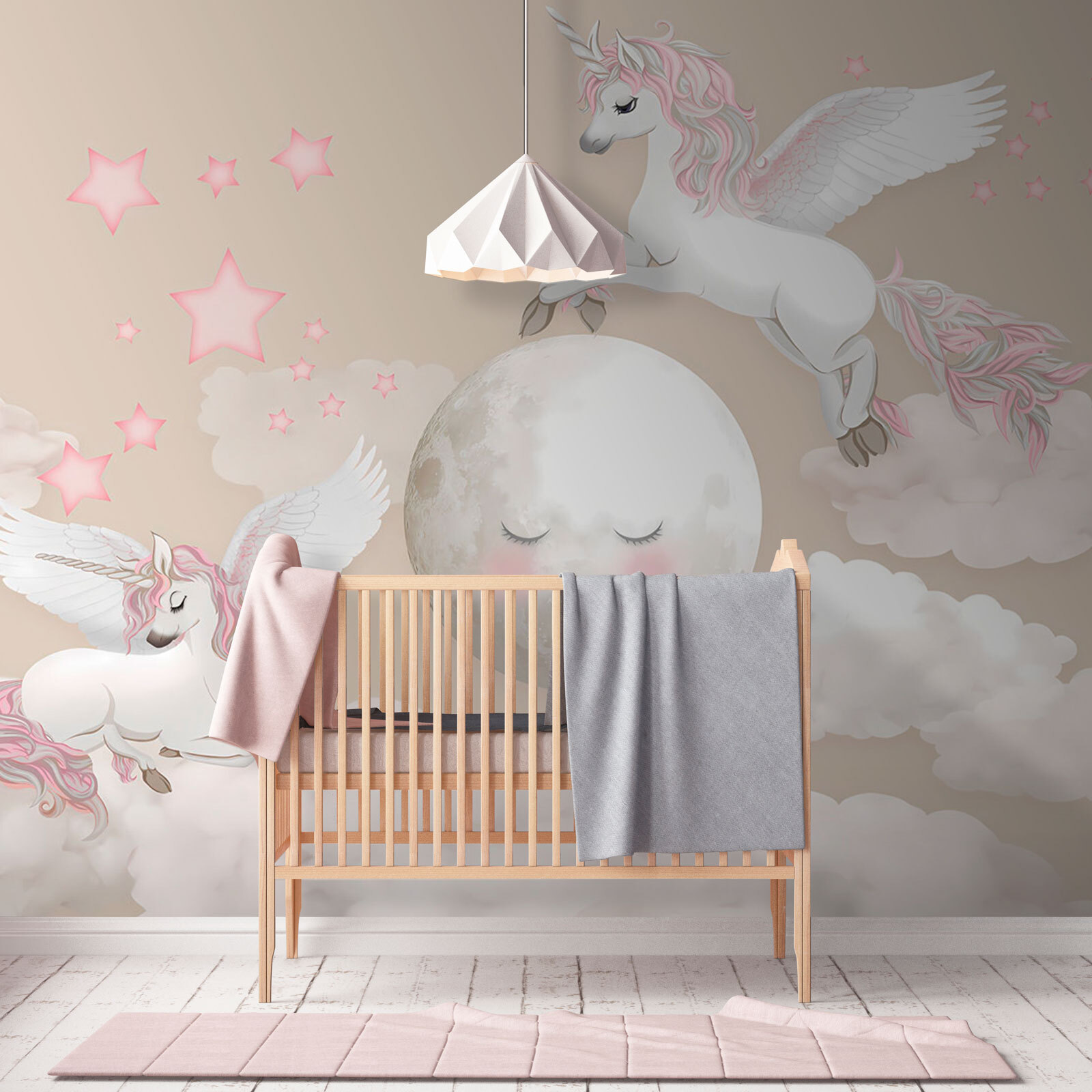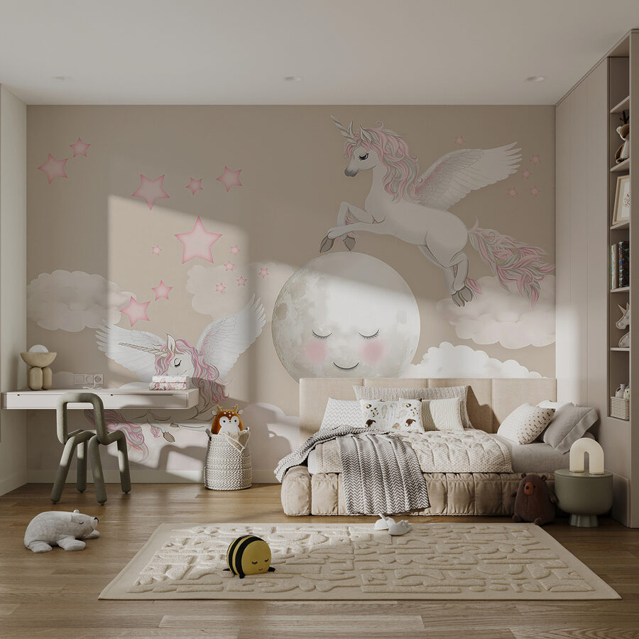 Imagine isto: o quarto do seu filho transformado numa terra de sonho caprichosa com este adorável mural de parede “Unicórnio com asas e corno”. Está repleto de nuvens fofas, estrelas cintilantes e os unicórnios mais bonitos e mágicos a voar por aí. Toda a vibração é suave, sonhadora e perfeita para despertar a imaginação de um pequenote. Imagine histórias de embalar sob o olhar gentil destes unicórnios encantados – cada noite parece uma viagem a um reino longínquo de contos de fadas. É como ter um pedaço de magia mesmo ali na parede, criando momentos de alegria e maravilha, vezes sem conta.
