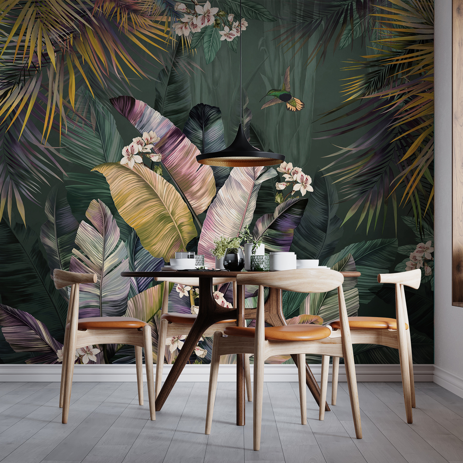 Imagine chegar a casa no seu próprio paraíso tropical com este deslumbrante mural “Hummingbird Flying in the Air” na sua parede. Os verdes vibrantes, a folhagem exuberante e as sugestões de flores delicadas criam uma vibração de selva exuberante que o fará sentir como se tivesse entrado numa floresta tropical serena. Ah, e aquele beija-flor encantador a esvoaçar por aí? Acrescenta uma pitada de magia – como a pequena e alegre dança da natureza mesmo na sua sala de estar.
