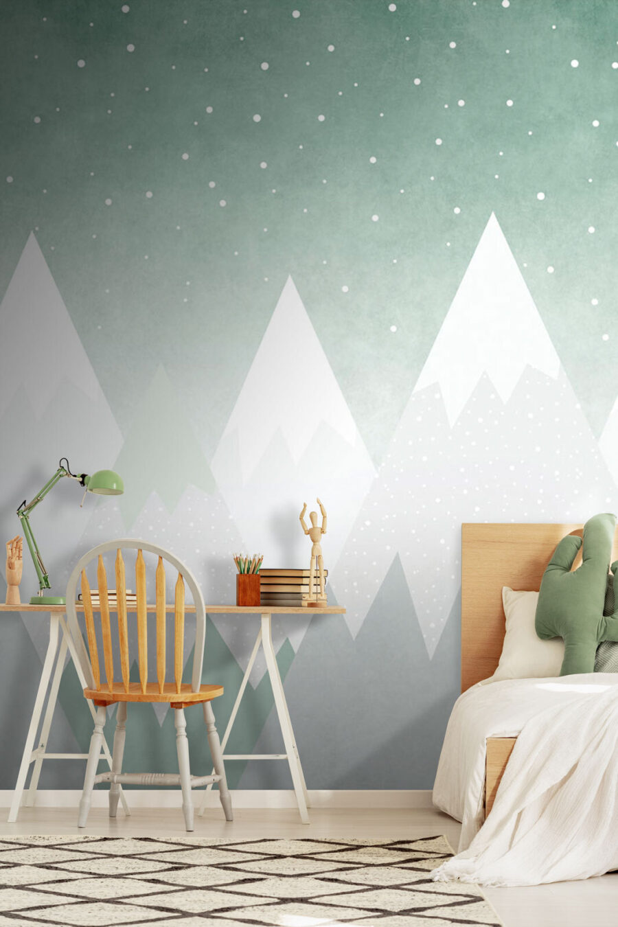 Imagine trazer uma cadeia de montanhas inteira para a sua casa, mas sem o frio e o equipamento de escalada pesado. Este mural de parede “Grupo de Montanhas com Neve” é como uma caminhada pacífica todos os dias, diretamente da sua sala de estar. É perfeito para iluminar um berçário, o quarto do seu filho, ou qualquer espaço que precise de um toque de calma da natureza. Os suaves picos cobertos de neve contra um céu de sonho podem fazer qualquer pessoa sentir-se como se estivesse num país mágico de inverno. Além disso, é uma óptima peça de conversa! Imagine só – amigos e familiares a admirar a sua escolha elegante e você a mencionar casualmente como trouxe uma fatia de beleza serena para a sua vida quotidiana. Vibrações acolhedoras garantidas.