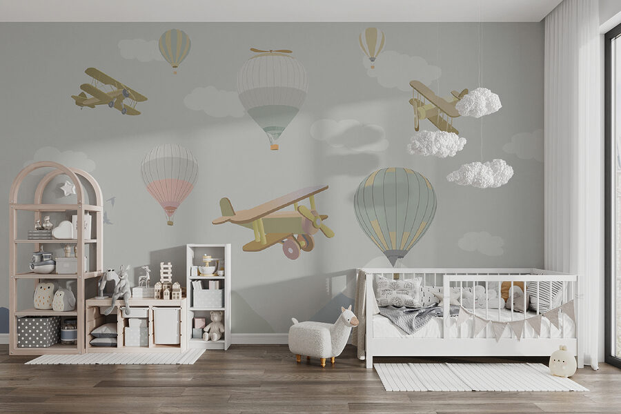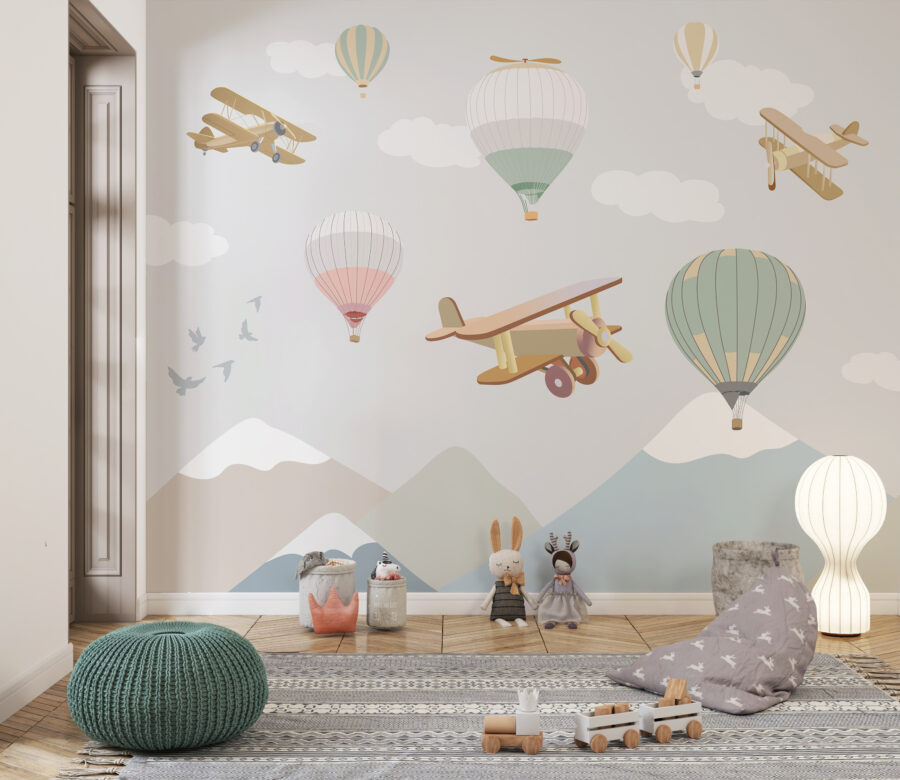 Tem um aventureiro selvagem na família? O mural de parede “Hot Air Balloon in the Sky” é como abrir uma janela para uma terra de sonho extravagante. Perfeito para infantários e quartos de pequenos exploradores, este mural apresenta balões de ar quente em tons pastel suaves e aviões antigos contra nuvens suaves e fofas – sobrevoando montanhas serenas. Imagine aquelas pequenas gargalhadas enquanto o seu filho adormece, sonhando com aventuras de voo! É calmante mas excitante, despertando a imaginação e mantendo as coisas muito divertidas. Sonhos agradáveis garantidos!
