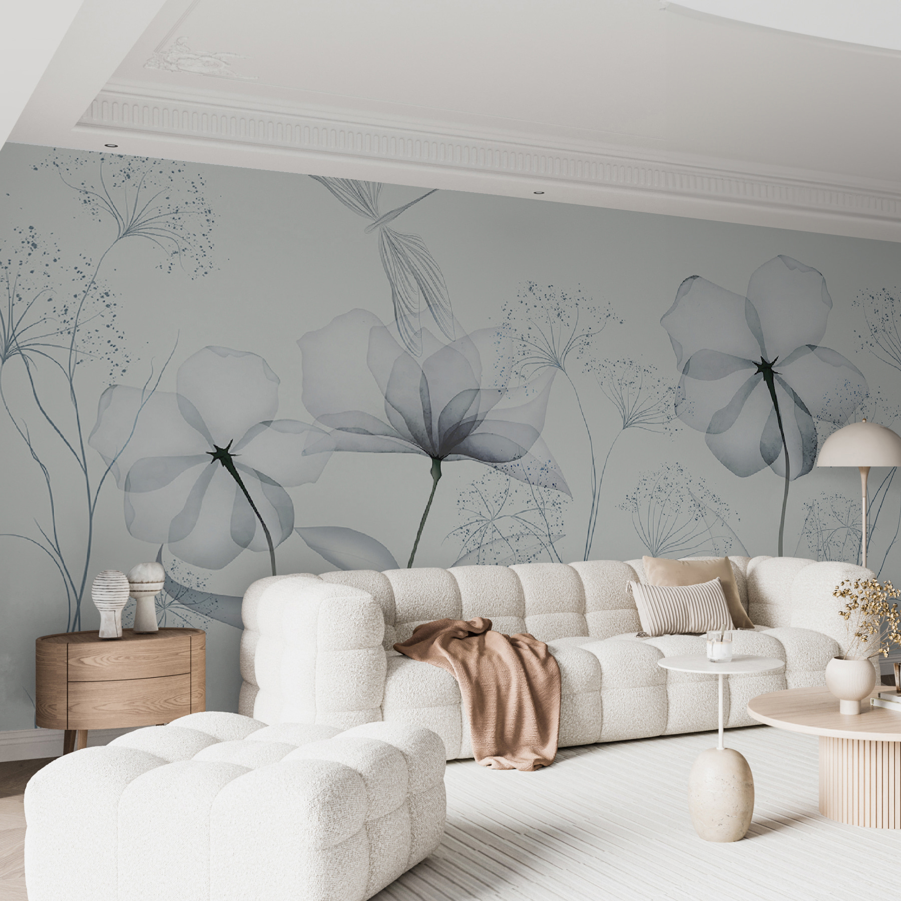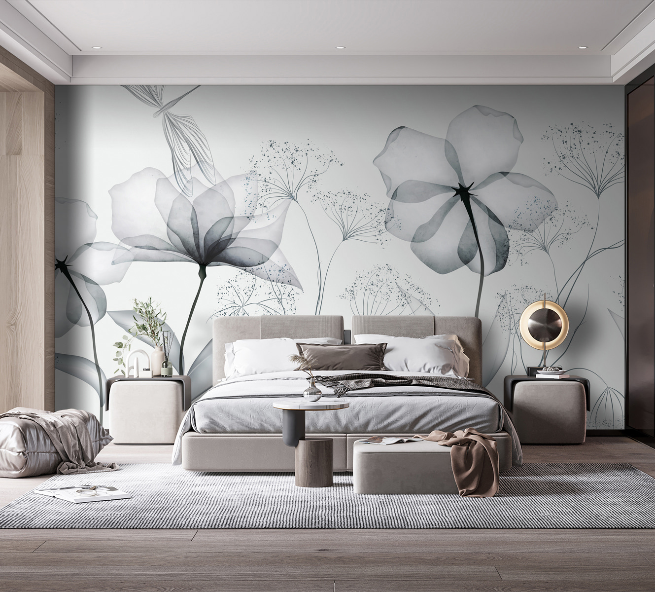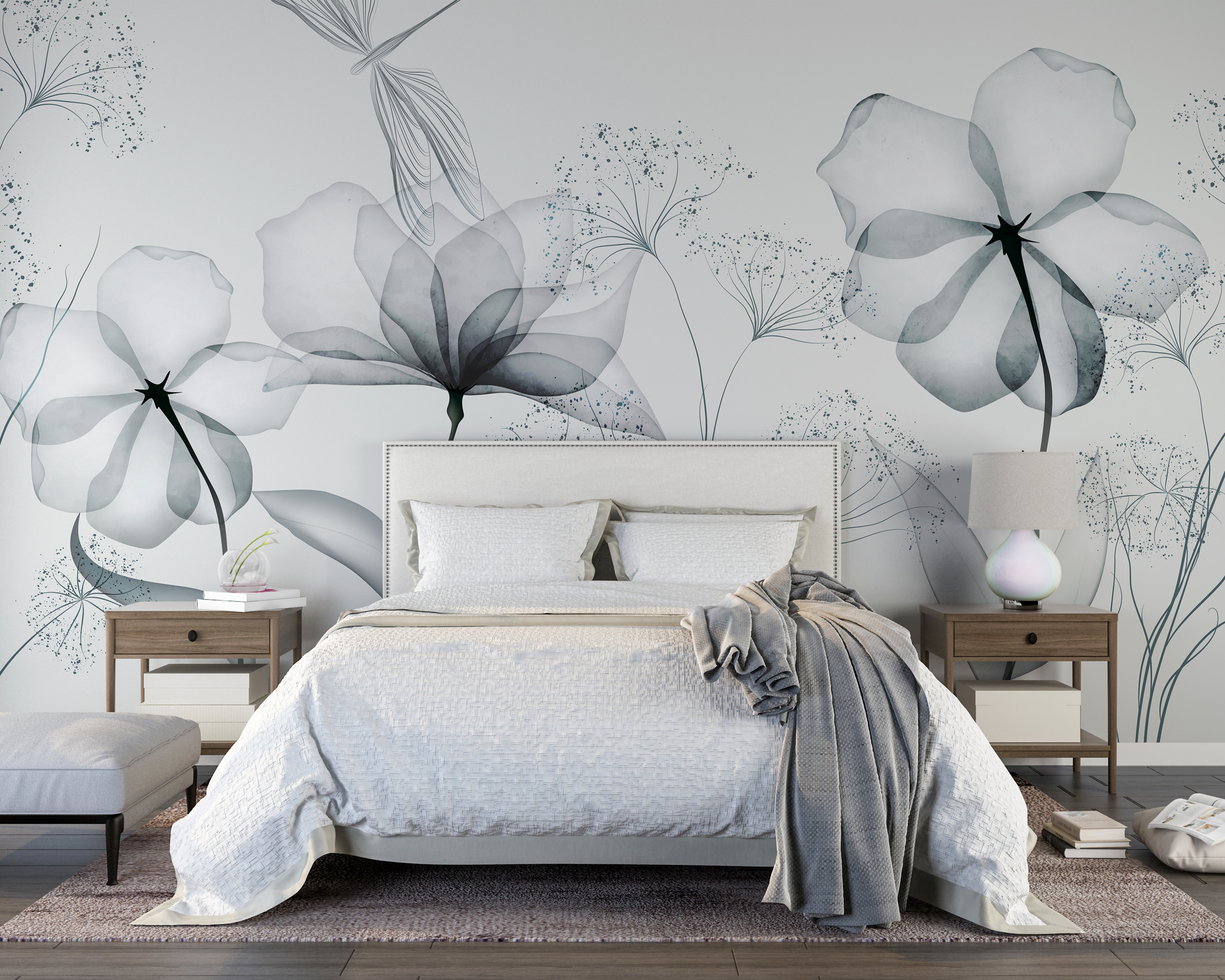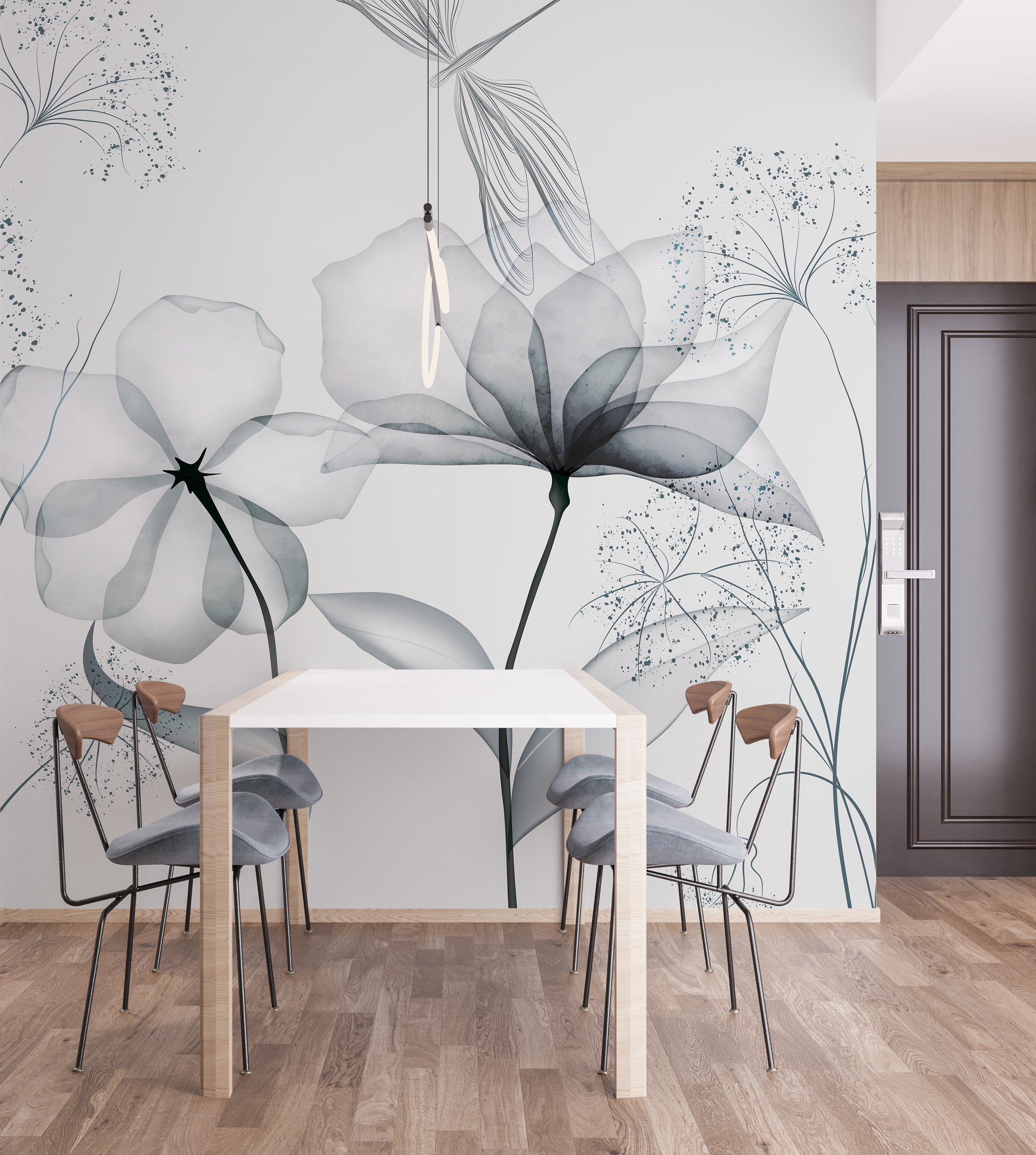 Imagine entrar numa sala e ser recebido pela beleza simples de flores delicadas e monocromáticas. Este mural de parede não é apenas decoração – é um ambiente. Cada flor, suavemente escovada em tons de cinzento suaves, fala de manhãs calmas e tardes tranquilas. Perfeito para quem gosta de um toque minimalista, mas anseia por uma pitada de natureza. É como ter um jardim de aguarela na sua sala de estar, sem ter de o regar! Quer esteja a sonhar acordado na sua cadeira favorita ou a receber amigos, este mural torna tudo um pouco mais sereno. Uma pequena fatia de tranquilidade na sua parede. Quem não adoraria?