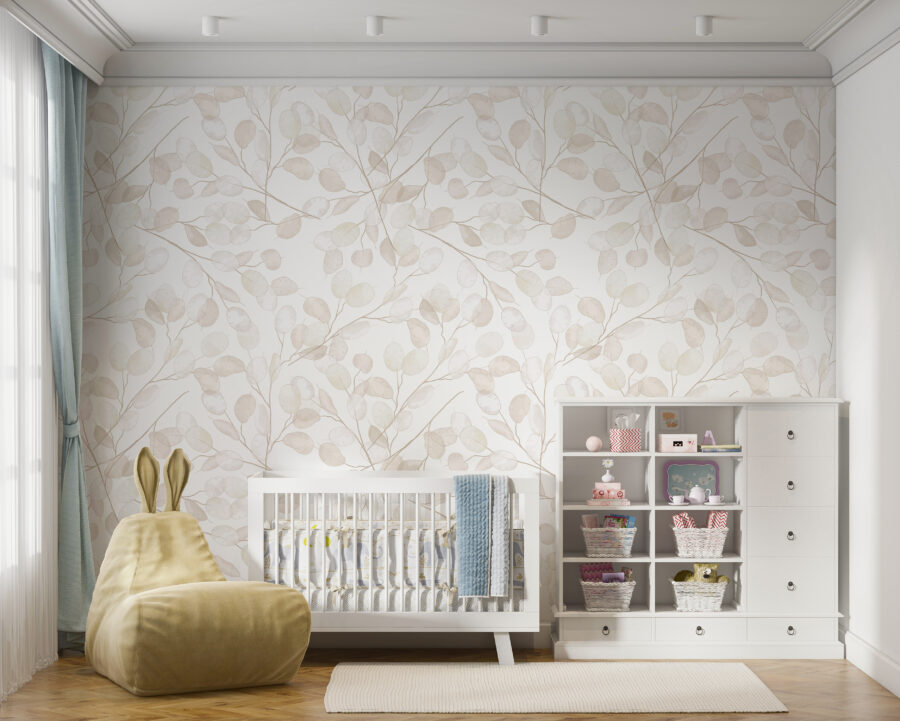 Transforme qualquer espaço com este encantador mural com desenhos suaves e subtis de plantas. É como trazer um sussurro da natureza para dentro de casa – perfeito para um quarto de bebé ou de menina. Imagine isto: a sua criança a olhar para aquelas folhas delicadas, a sonhar com aventuras em florestas encantadas ou danças de borboletas. As cores suaves criam uma atmosfera serena, tornando-o num retiro acolhedor depois de um dia cheio de risos e brincadeiras. Não é apenas uma decoração; é uma tela para a imaginação! Este mural convida a histórias, risos e sonhos doces, tornando cada momento no quarto um pouco mais especial. Imagine só os sorrisos!