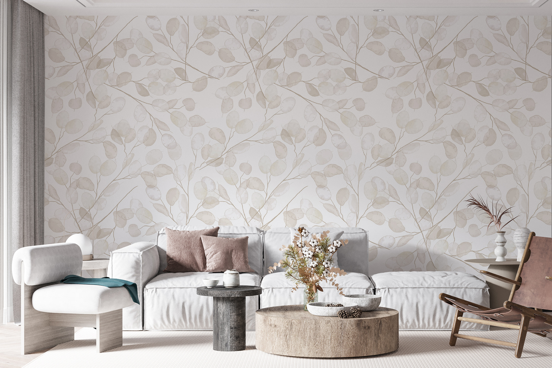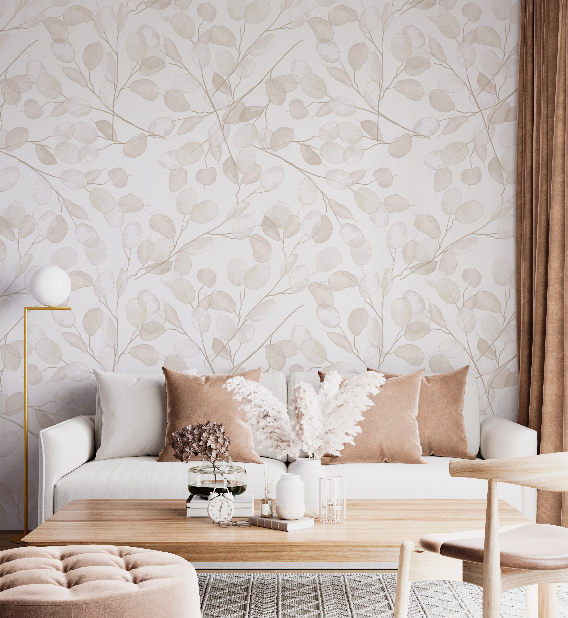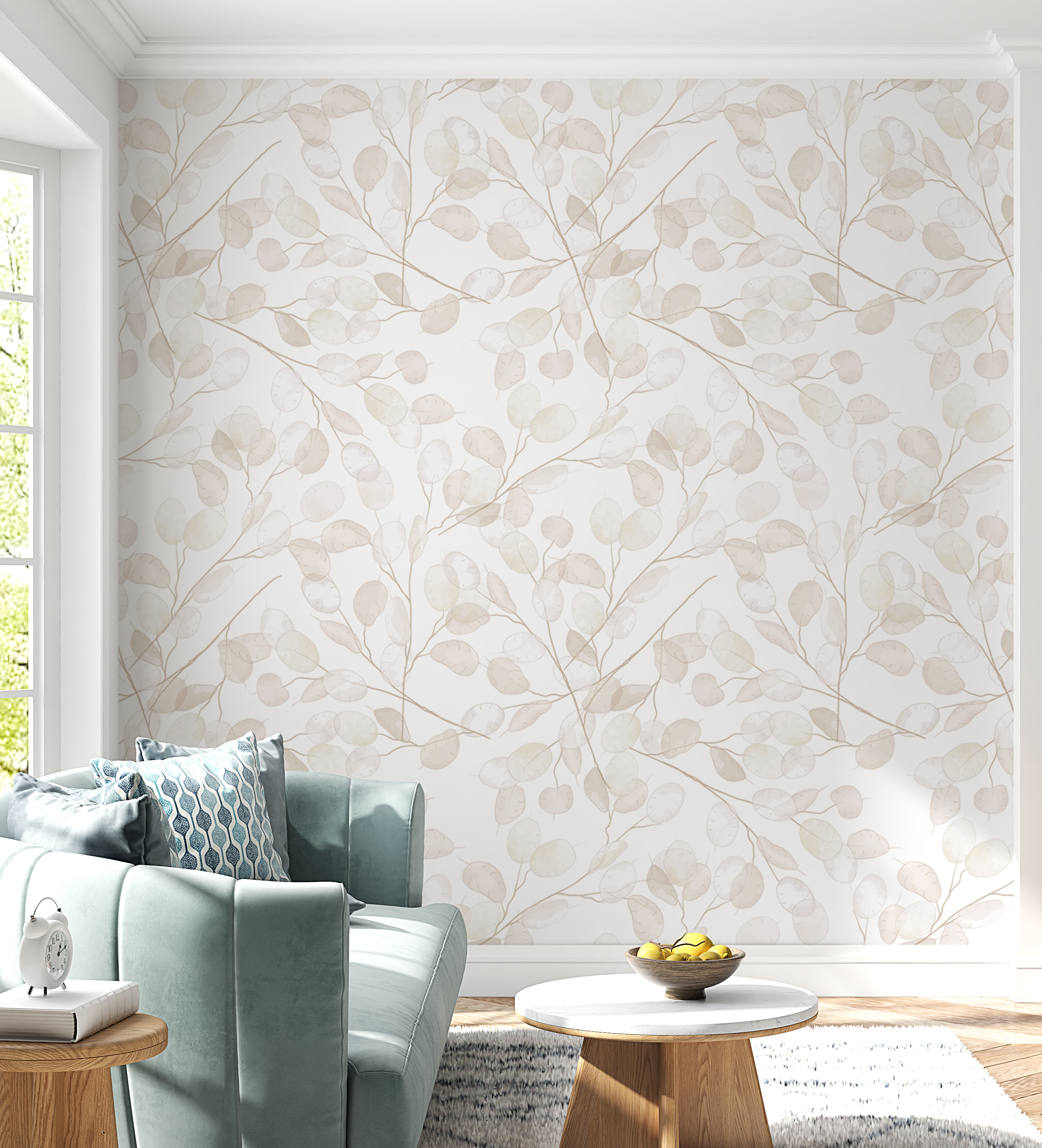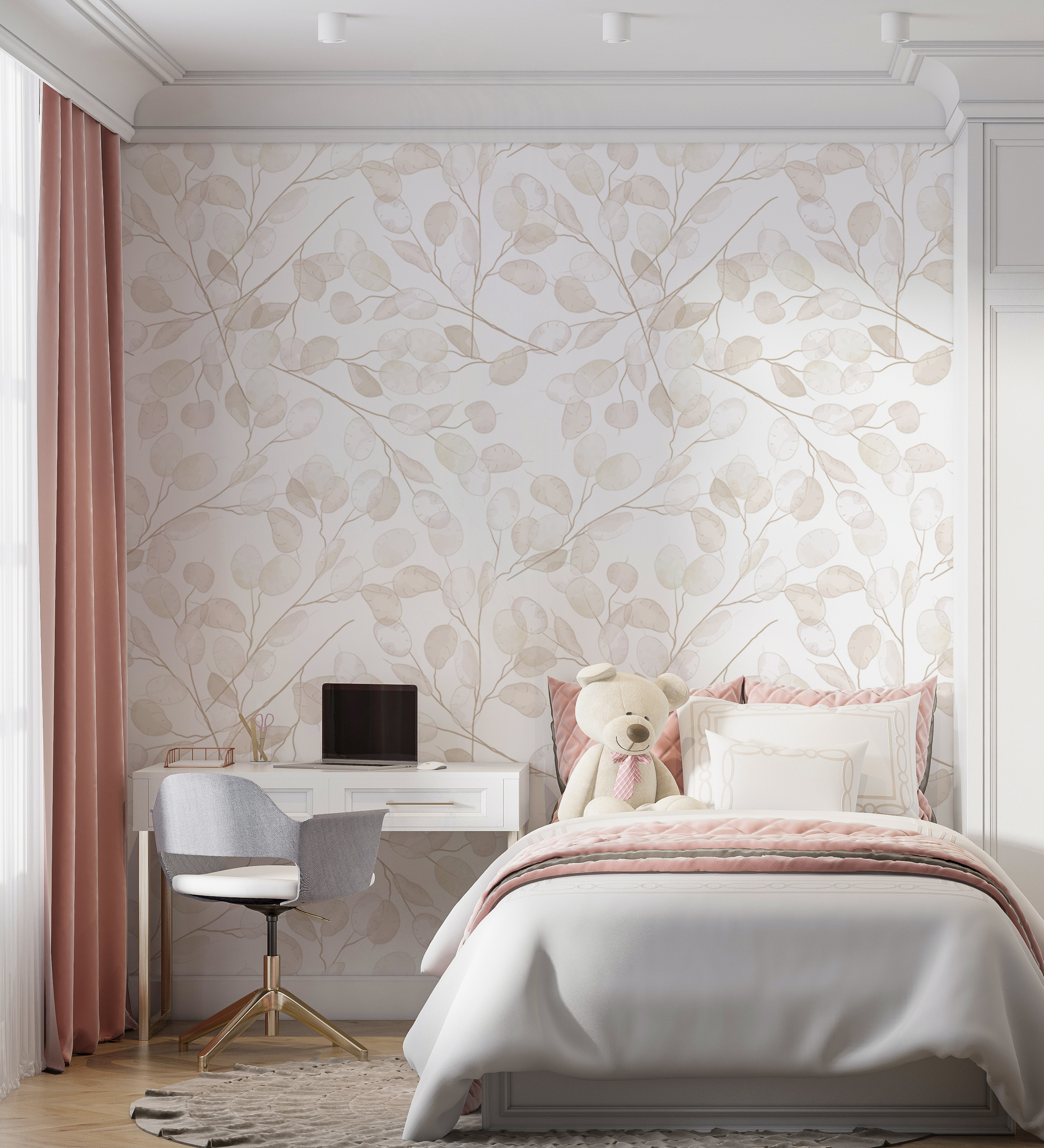 Transforme qualquer espaço com este encantador mural com desenhos suaves e subtis de plantas. É como trazer um sussurro da natureza para dentro de casa – perfeito para um quarto de bebé ou de menina. Imagine isto: a sua criança a olhar para aquelas folhas delicadas, a sonhar com aventuras em florestas encantadas ou danças de borboletas. As cores suaves criam uma atmosfera serena, tornando-o num retiro acolhedor depois de um dia cheio de risos e brincadeiras. Não é apenas uma decoração; é uma tela para a imaginação! Este mural convida a histórias, risos e sonhos doces, tornando cada momento no quarto um pouco mais especial. Imagine só os sorrisos!