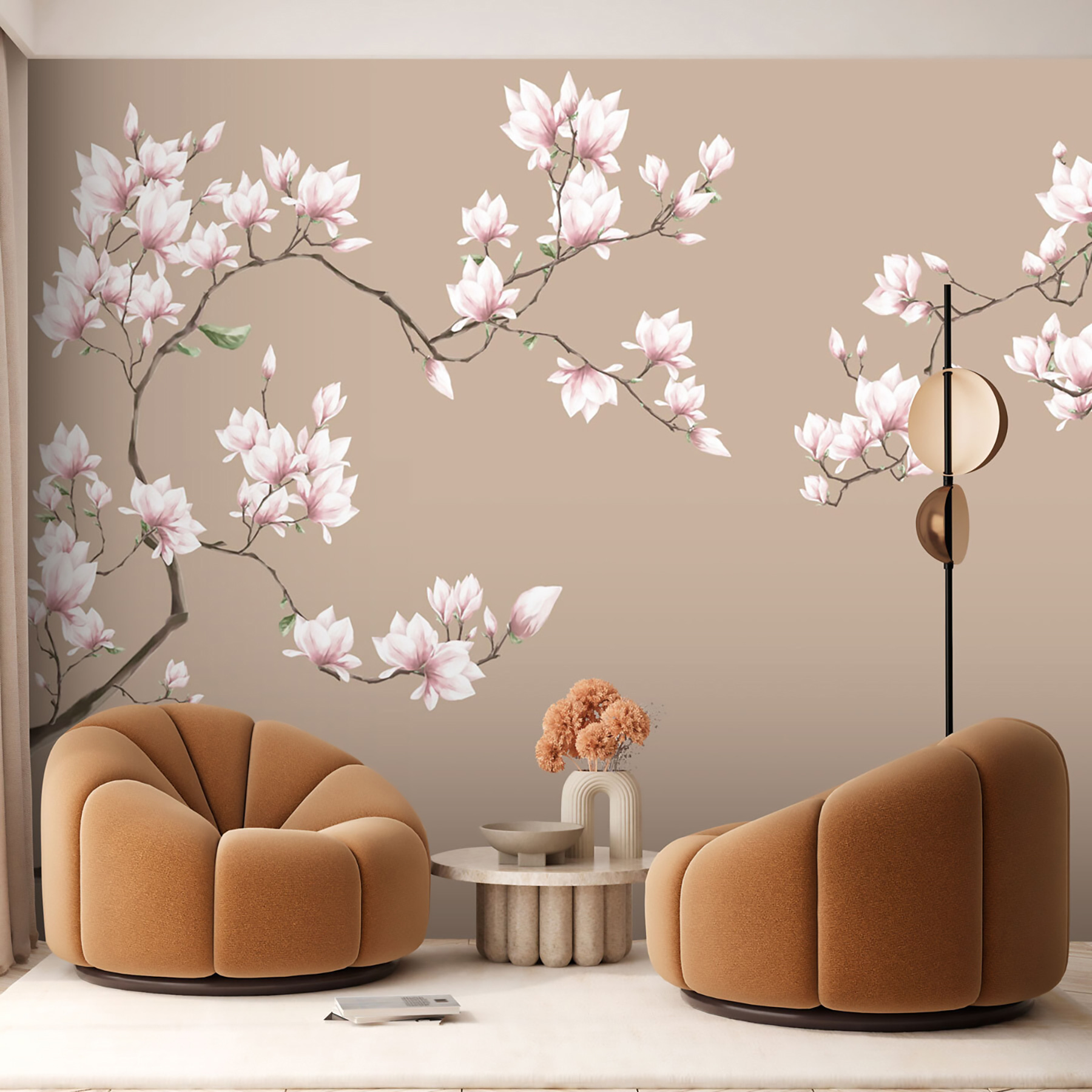 Transforme o seu espaço com os encantadores murais de parede Blooming Magnolia Branches em Pastel! Imagine-se a entrar numa sala onde delicadas flores de magnólia atravessam as paredes, levantando instantaneamente o ambiente. A paleta de tons pastel suaves sussurra calor e tranquilidade, perfeita para aquele recanto de leitura acolhedor ou mesmo para uma área de estar animada.