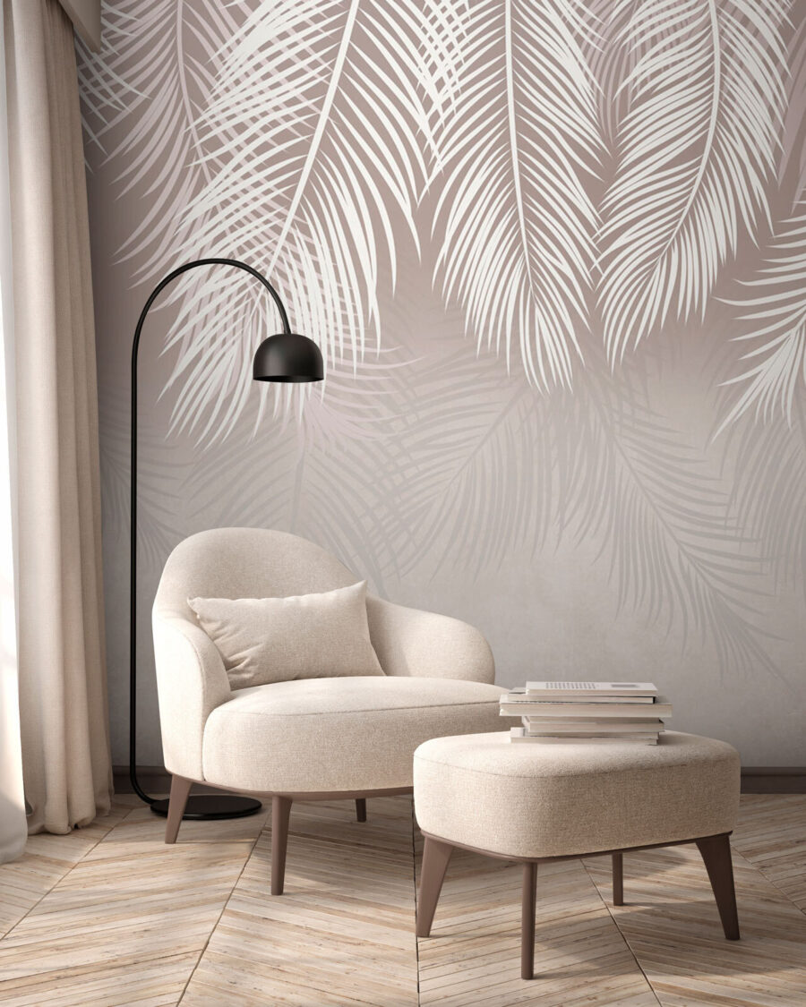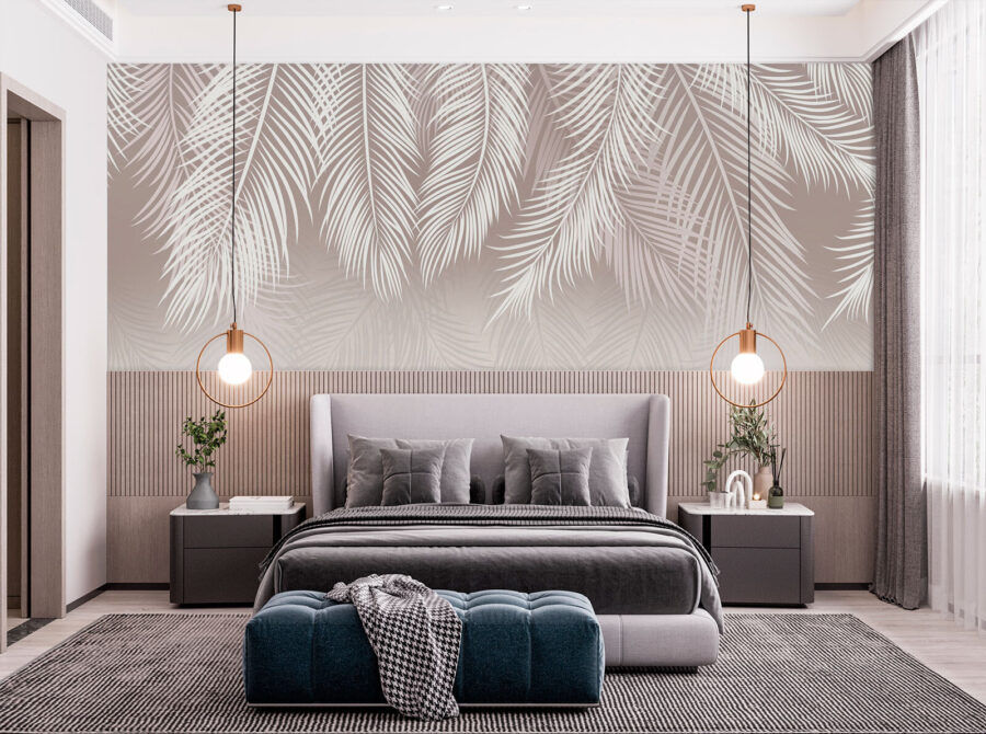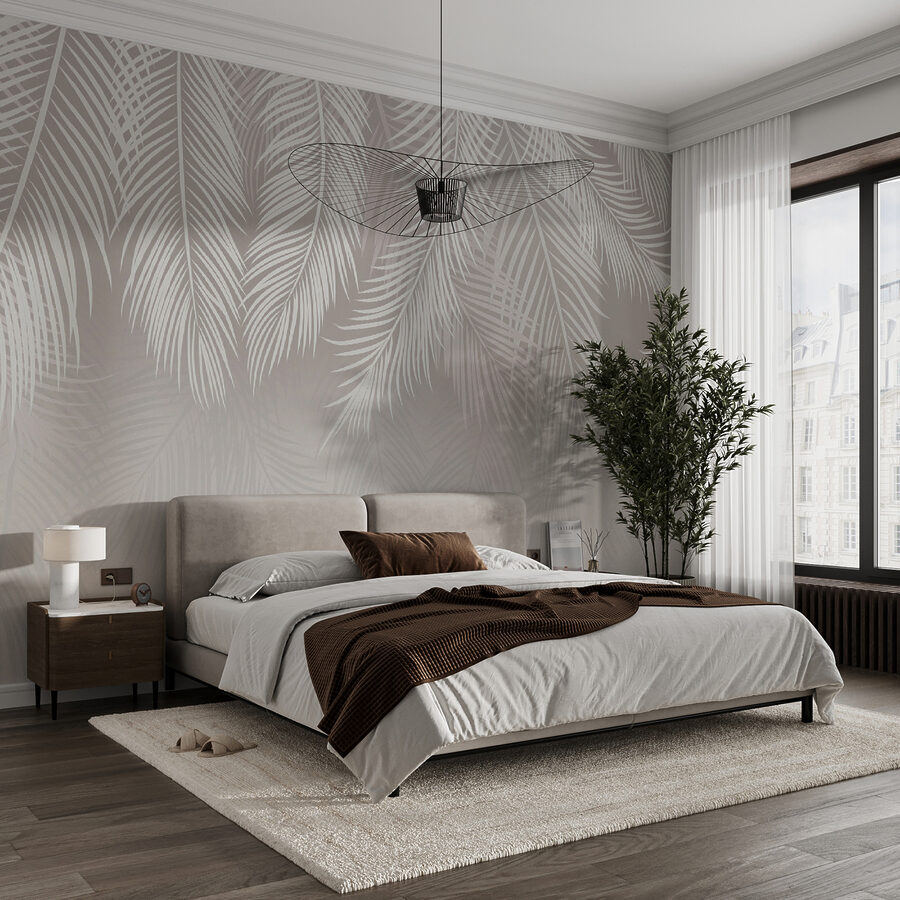 Transforme o seu espaço com este elegante mural com padrão de folhas de palmeira, uma mistura perfeita de tranquilidade e estilo. Imagine-se a entrar numa sala que sussurra relaxamento a cada olhar. As folhas suaves e subtis criam um pano de fundo calmante, como se estivesse a entrar num sereno paraíso tropical sem sair de casa. É como ter umas mini-férias diretamente na sua parede. Os amigos podem perguntar se instalou uma janela para um jardim luxuriante. Perfeito para um recanto de leitura acolhedor ou para uma sala de estar animada, este mural traz uma lufada de ar fresco e um toque de natureza para dentro de casa.