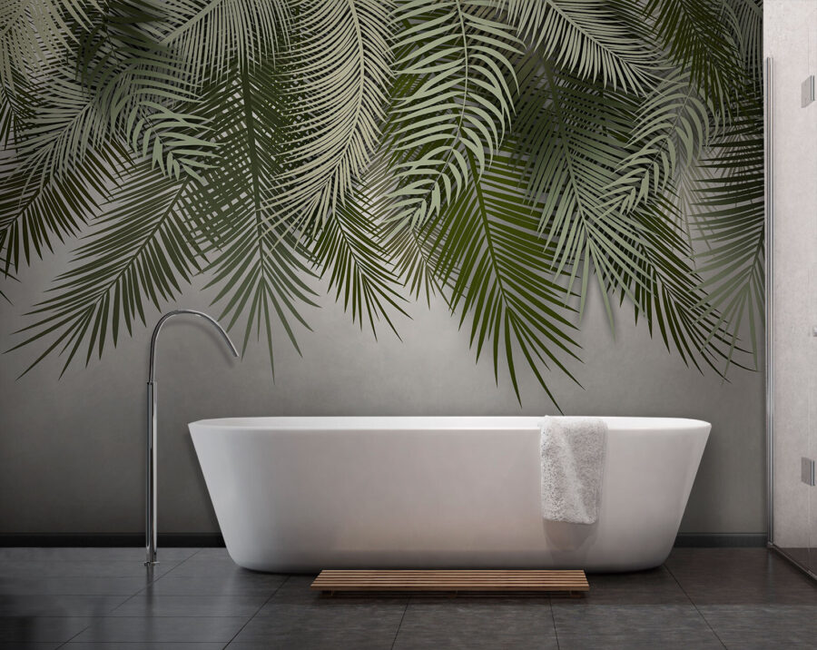 O mural parece vivo, mas não é avassalador. É apenas o suficiente para o fazer pensar em dias quentes e arejados sem ter de se preocupar com a rega das plantas. Combina bem com designs minimalistas ou pode ser usado com uma decoração vibrante e tropical – super versátil! Este design respira vida e frescura, fazendo-nos sentir como se estivéssemos deitados debaixo de um dossel, a olhar para o céu. Não é fixe?