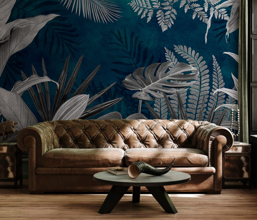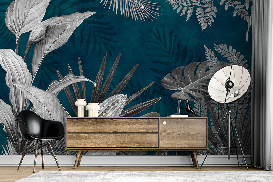 Perfeito para aqueles que adoram a natureza, mas não têm necessariamente um polegar verde. O fundo azul-petróleo dá um toque sofisticado, fazendo com que as folhas se destaquem lindamente. Sabe, não é apenas um mural – é uma experiência. É ótimo para meditar, relaxar ou até mesmo para se desligar um pouco. Além disso, os convidados vão achar que é ultra-legal. Quem não gostaria de ter o seu próprio refúgio tropical em casa?