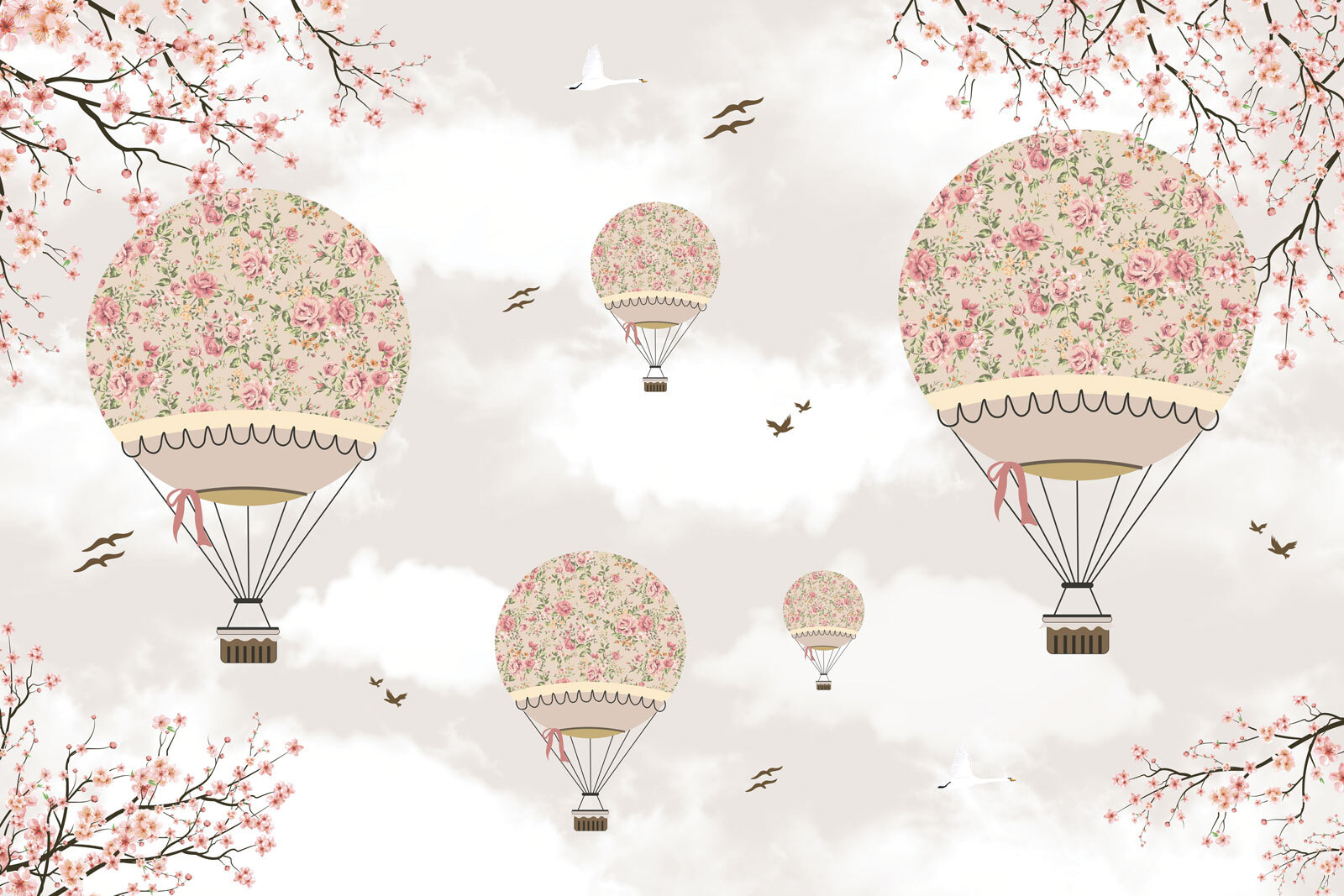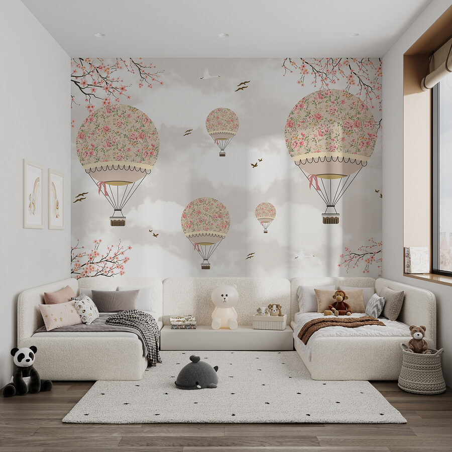 Imagine acordar num céu cheio de balões de ar quente florais! Este encantador mural de parede leva-o para um mundo sonhador e caprichoso onde as flores flutuantes encontram nuvens fofas. Perfeito para o quarto de uma criança – especialmente o santuário de uma filha – é suave mas deliciosamente imaginativo. Os padrões florais transmitem uma vibração vintage, misturando-se sem esforço com uma decoração moderna. Não consegue ver um pequenote a olhar para cima, a inventar aventuras? É como trazer uma fatia de um jardim mágico e a deliciosa subida de um festival de balões para a sua casa. Ótimo para acalmar as histórias de embalar ou para despertar sonhos diurnos!