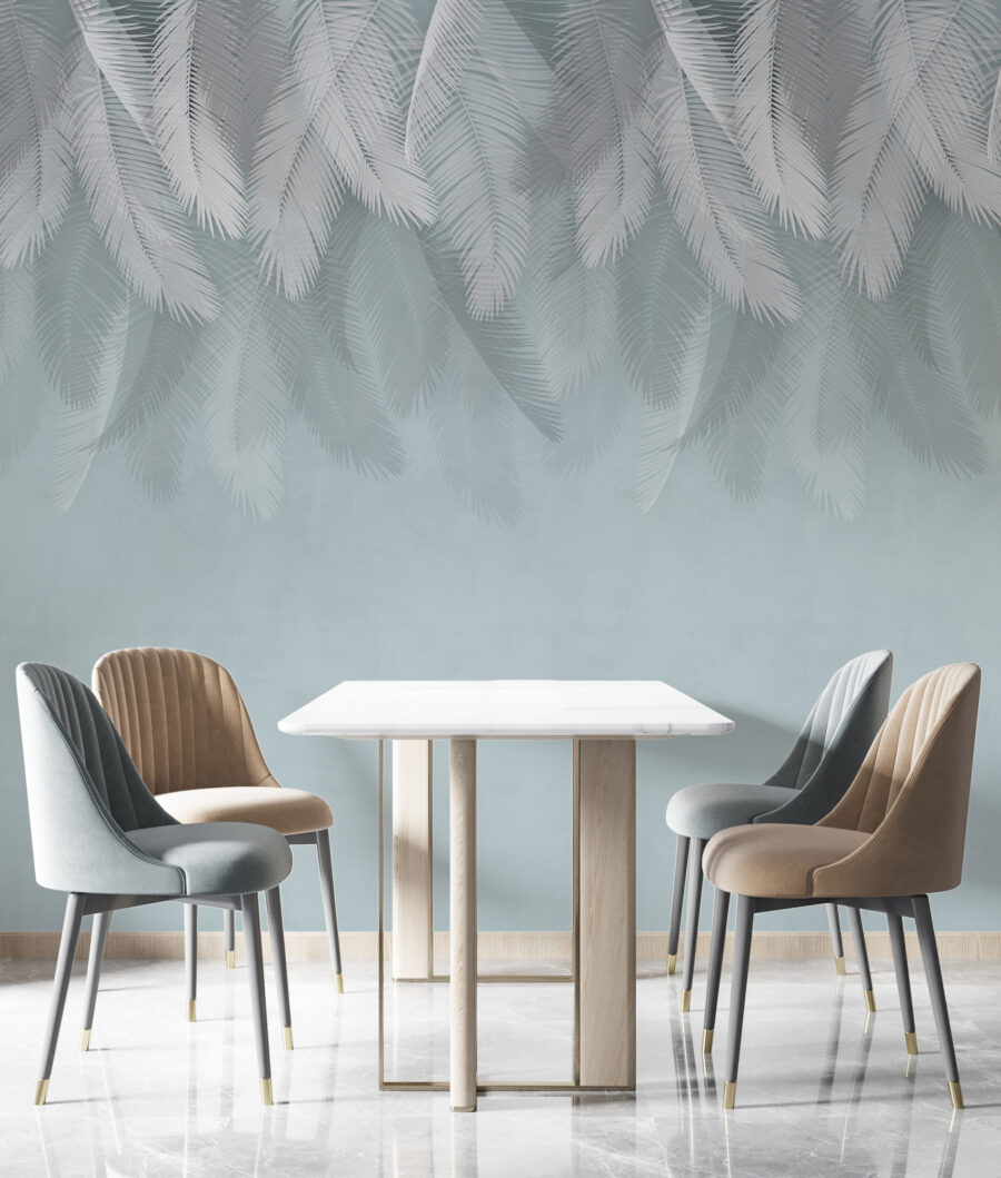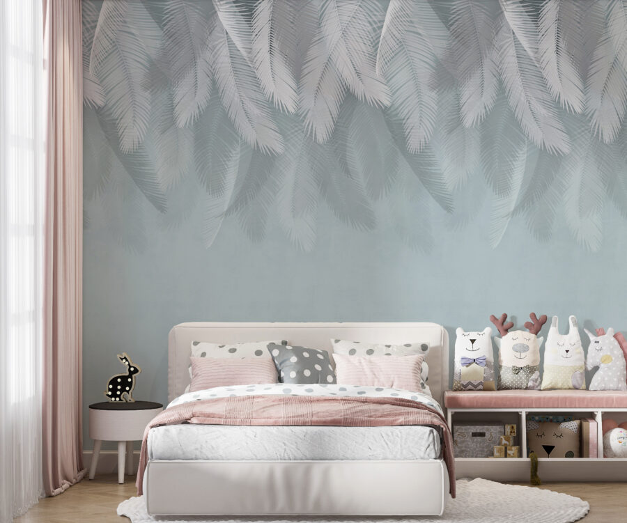 Imagine entrar numa sala acolhedora e ser recebido por suaves penas brancas flutuando contra um fundo azul suave. Este mural não é apenas uma decoração; é um pequeno pedaço de serenidade que envolve o seu espaço numa atmosfera calma. Perfeito para um quarto ou recanto de leitura, é como uma brisa suave num dia quente. O design caprichoso sussurra sonhos e aventuras, talvez até mesmo um passeio de balão de ar quente por nuvens de algodão doce. É o tipo de arte que convida você a permanecer, respirar fundo e escapar da agitação por um momento. Deixe cada olhar trazer um sorriso!