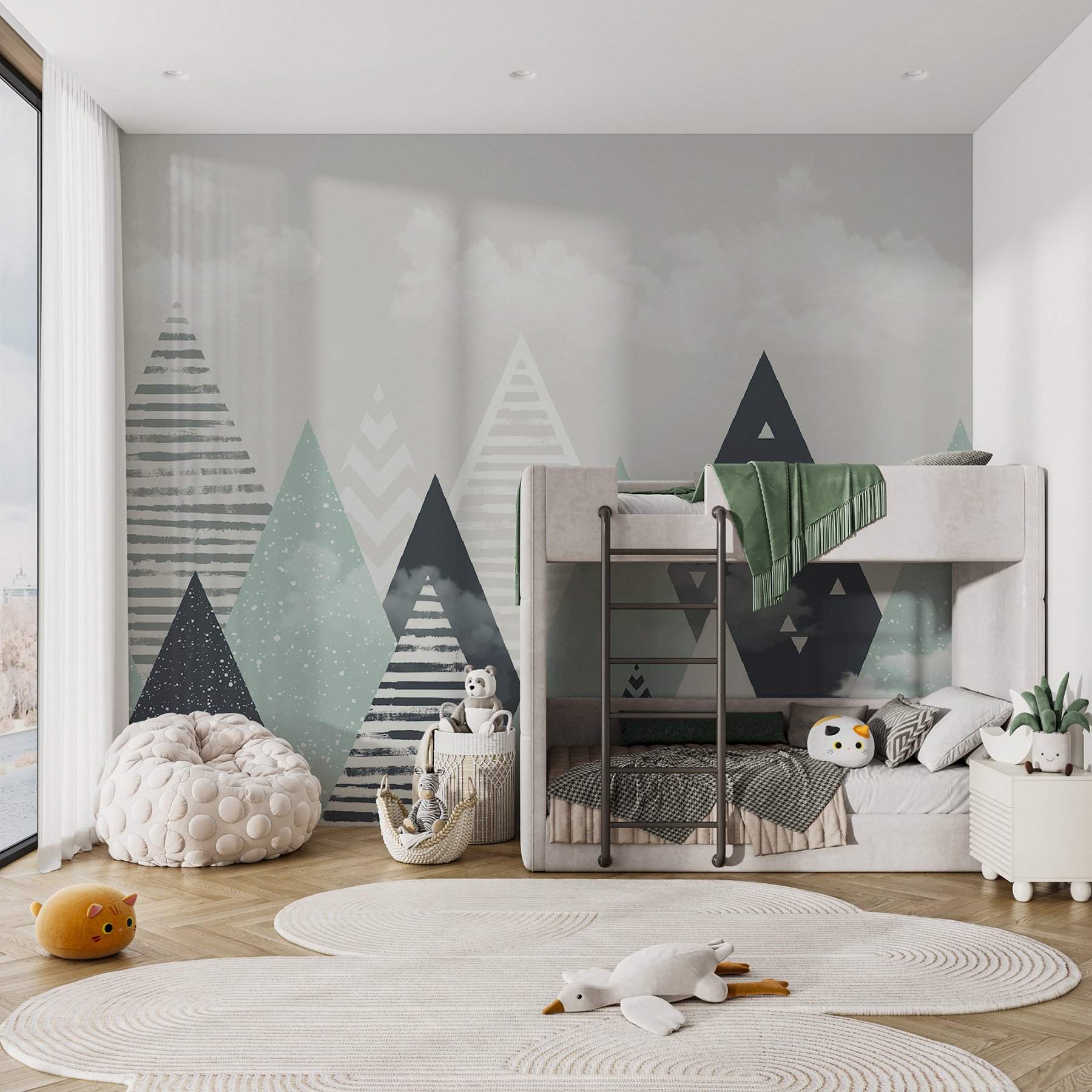 É um mural que diz: “Ei, vamos sonhar acordado!” Quer seja para se aconchegarem durante uma história para dormir ou para brincarem com os seus brinquedos favoritos, este mural cria uma vibração calmante e criativa. Quase se consegue ouvir os sussurros de histórias e aventuras que se desenrolarão no seu recanto acolhedor, coberto de chevron. Transforme o espaço do seu filho num país das maravilhas onde a sua imaginação pode voar!