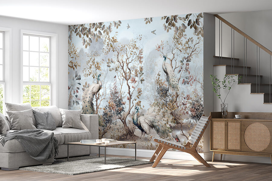 Quer dar um toque de capricho à natureza dentro de casa? O mural de parede “Bird Flying in the Sky” pode ser exatamente o que o seu espaço precisa. Imagine acordar com esta cena de sonho de pavões elegantes a pavonearem-se à volta de árvores lindamente pintadas. Os tons suaves e os detalhes intrincados fazem com que se sinta como se a natureza estivesse a abraçar calmamente a sua sala de estar ou o seu quarto.