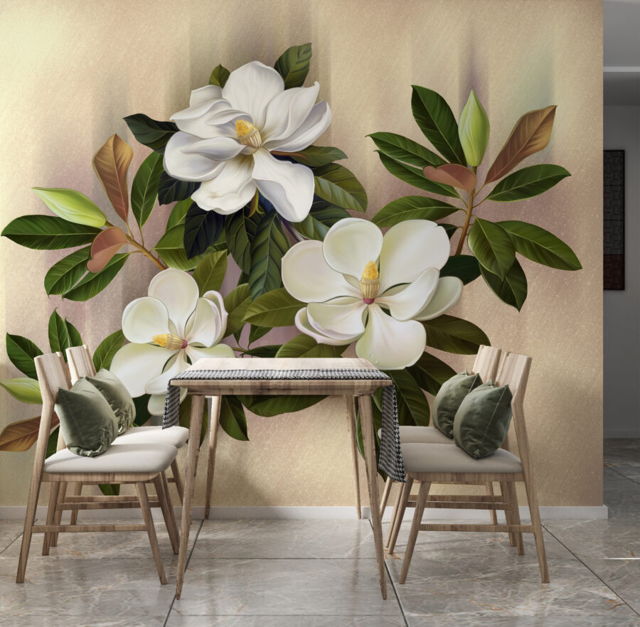 Transforme qualquer divisão numa oásis vibrante com o mural de parede “Elegant Blooms with Lush Green Leaves” (Flores elegantes com folhas verdes exuberantes). Imagine entrar na sua sala de estar e ser recebido por estas flores brancas deslumbrantes, que praticamente imploram por um segundo olhar. É como trazer um jardim para dentro de casa, sem os insetos irritantes! Perfeito para um recanto de leitura acolhedor ou para aquela parede vazia que precisa desesperadamente de uma história.