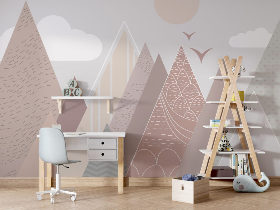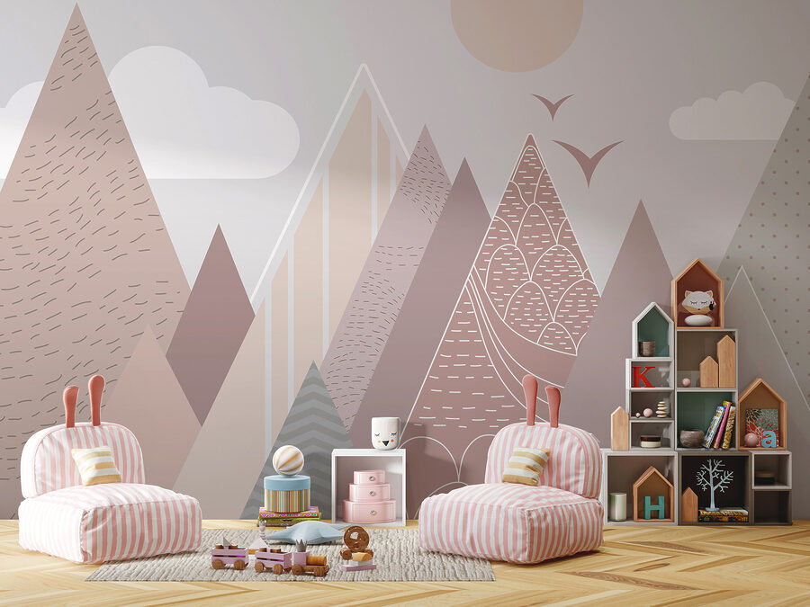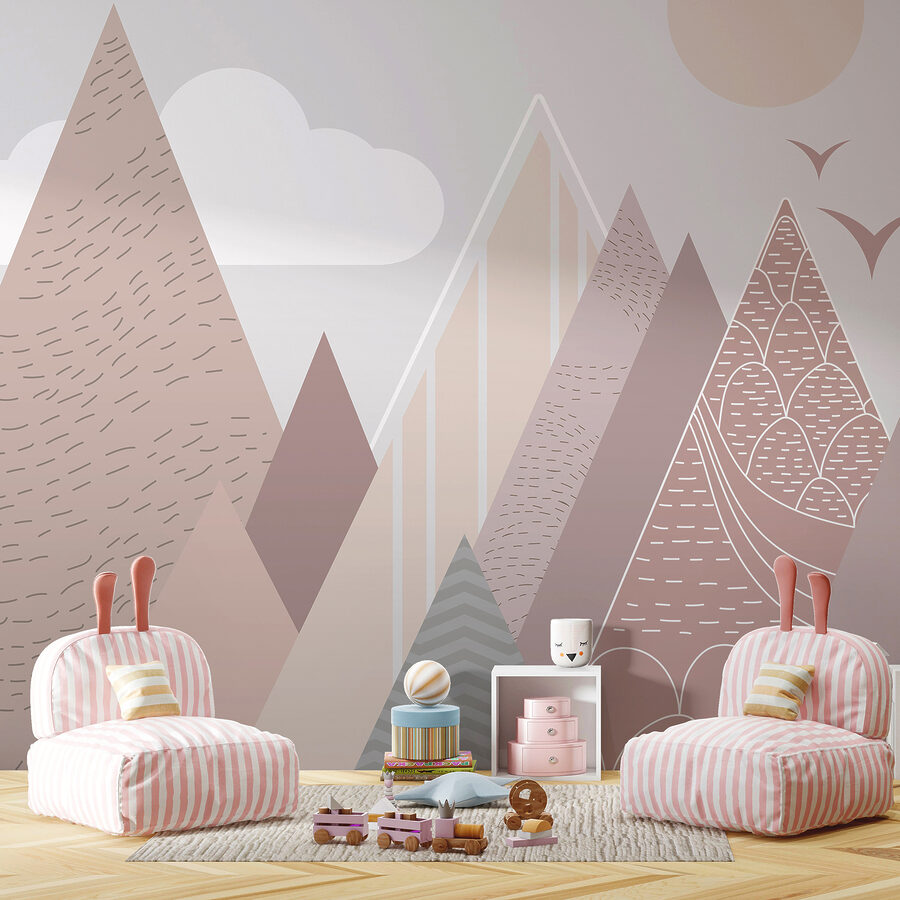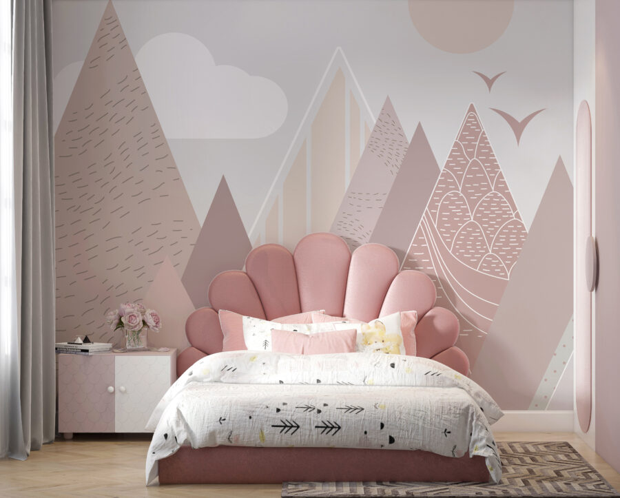Imagine entrar numa sala e sentir uma sensação instantânea de calma e capricho – como um sonho aconchegante. O mural de parede “Geometric Mountains with Birds Flying” faz exatamente isso. Ele traz uma vibração doce e serena para o quarto de qualquer criança com as suas montanhas lúdicas e pastel e pássaros voadores amigáveis. Ótimo para infantários e quartos de crianças, ele borrifa um pouco de magia sem ser demasiado barulhento.