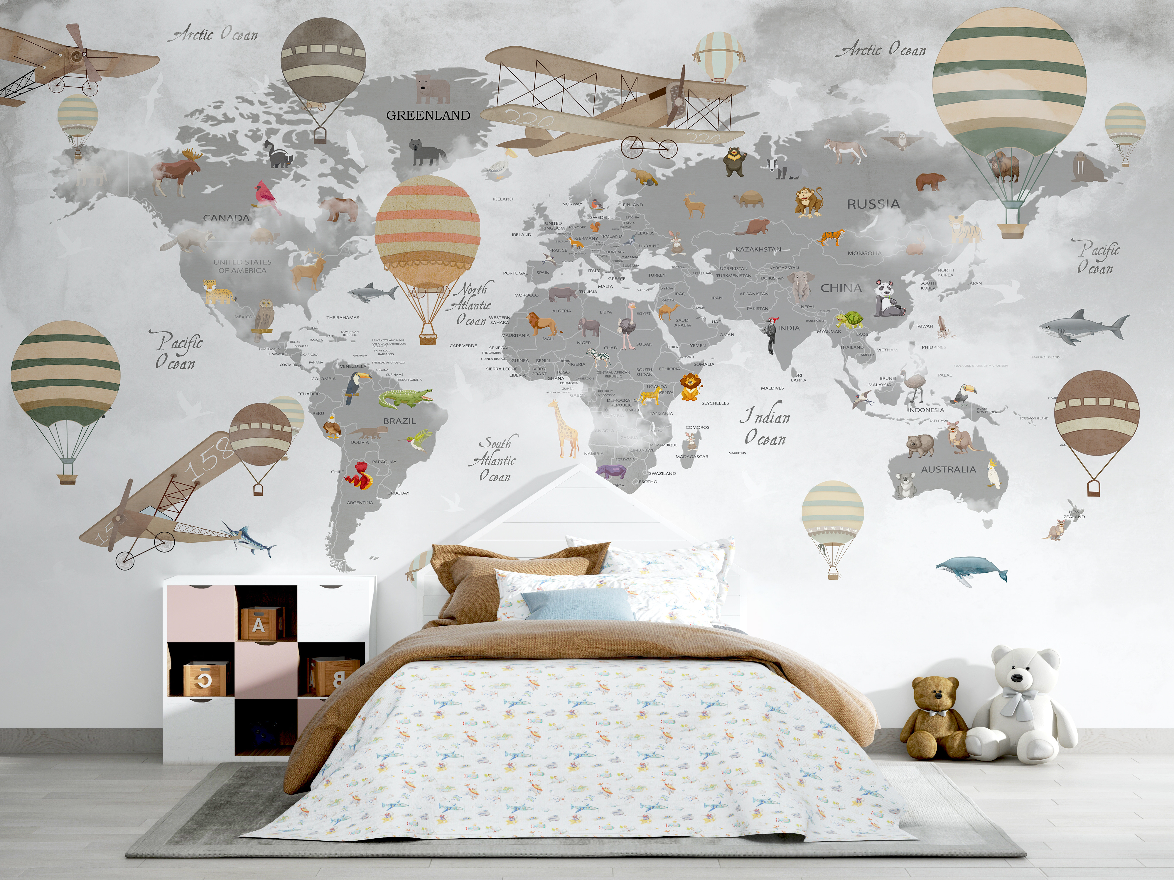 Imagine isto – o seu pequeno aventureiro a acordar num quarto cheio de balões de ar quente extravagantes a flutuar sobre um mapa antigo! “Balão de ar quente com um tubarão ao fundo” é um mural peculiar e encantador, perfeito para despertar a curiosidade. Não se trata apenas de geografia; é como uma história à espera de se desenrolar. Imagine contos de embalar sobre viagens pelo mundo, encontros com animais e uma espreitadela ao tubarão atrevido. Ideal para crianças que sonham em grande, transforma qualquer espaço numa plataforma de lançamento lúdica para a imaginação. É divertido, educativo e com um toque de charme vintage, tudo numa fabulosa decoração de parede!