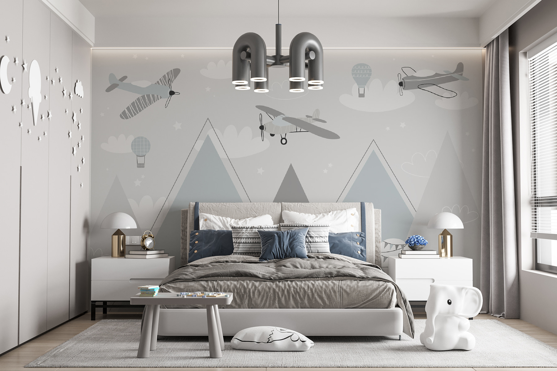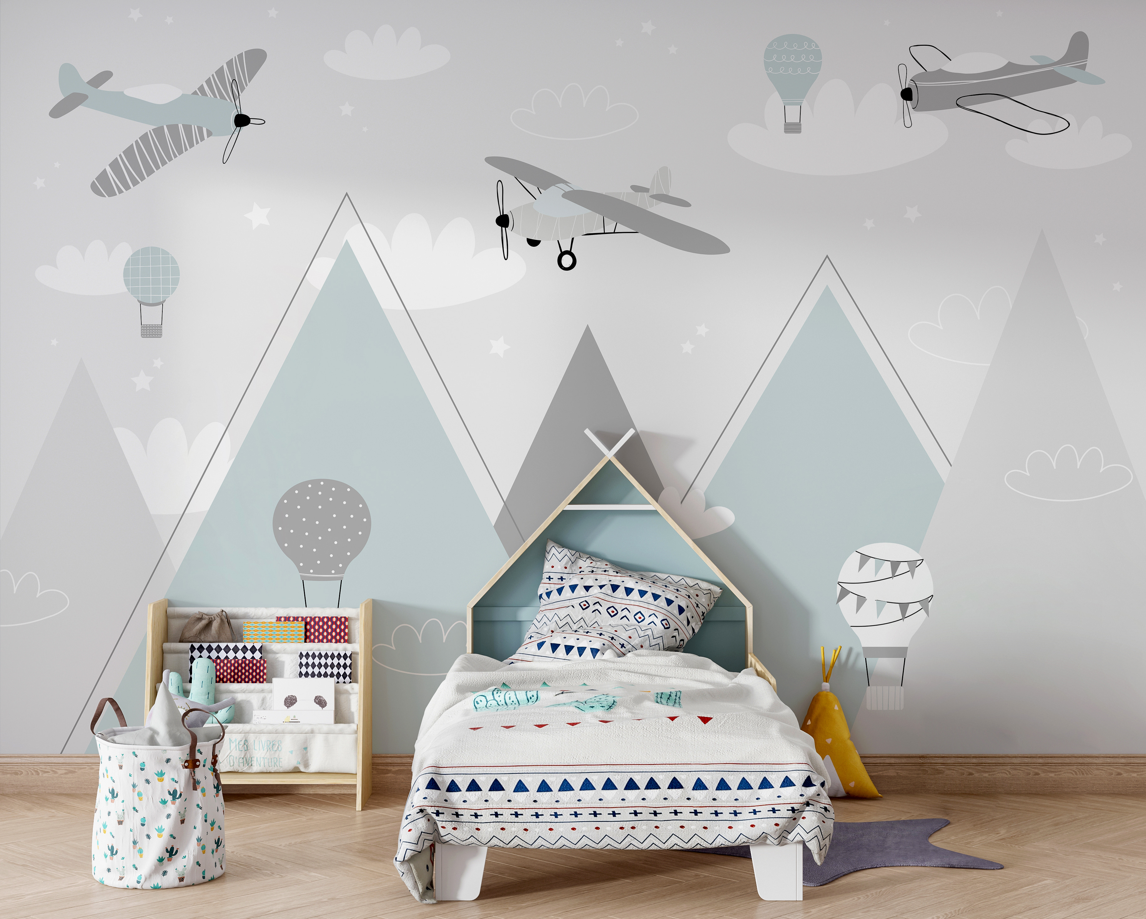Imagine o quarto do seu filho a transformar-se instantaneamente com este mural de parede encantador, repleto de aviões antigos e balões de ar quente extravagantes. É como entrar numa aventura de sonho, em tons pastel – um céu cheio de histórias suaves à espera de serem reveladas. Cada vez que o seu pequenino olha para ele, a sua imaginação pode levantar voo, sobrevoando estas montanhas encantadoras. Perfeito para filhos, filhas, bebés ou qualquer pessoa que goste de um pouco de diversão caprichosa. Além disso, quem consegue resistir a estes adoráveis desenhos? Não é apenas uma decoração – é uma viagem num quarto. Imagine histórias de embalar a voar, rodeadas por este cenário sereno e divertido. Boa viagem até à terra dos sonhos!