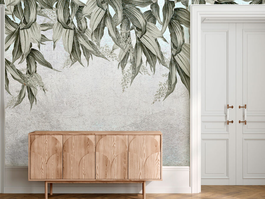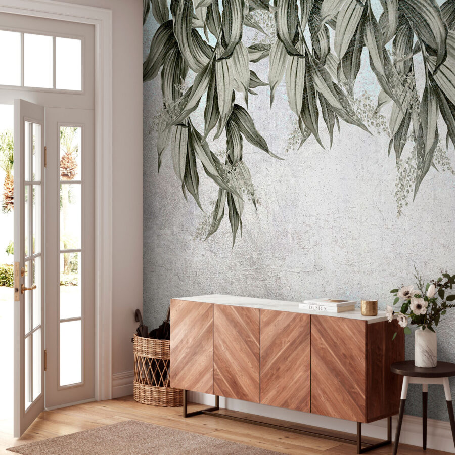 Transforme paredes aborrecidas numa fuga serena com este mural com folhas penduradas numa parede subtilmente sombreada. Imagine entrar numa sala que parece ter sido beijada por uma brisa suave, onde as folhas balançam e dançam suavemente, convidando a vibrações calmas. É perfeito para criar esse oásis de selva no seu espaço de vida. Quer seja num recanto acolhedor ou numa sala de estar espaçosa, este mural sussurra relaxamento, fazendo com que cada reunião se sinta especial. A elegância discreta confere-lhe um encanto intemporal – quem não adoraria um toque de natureza dentro de casa? É como trazer um belo jardim para dentro de casa, sem o regador!