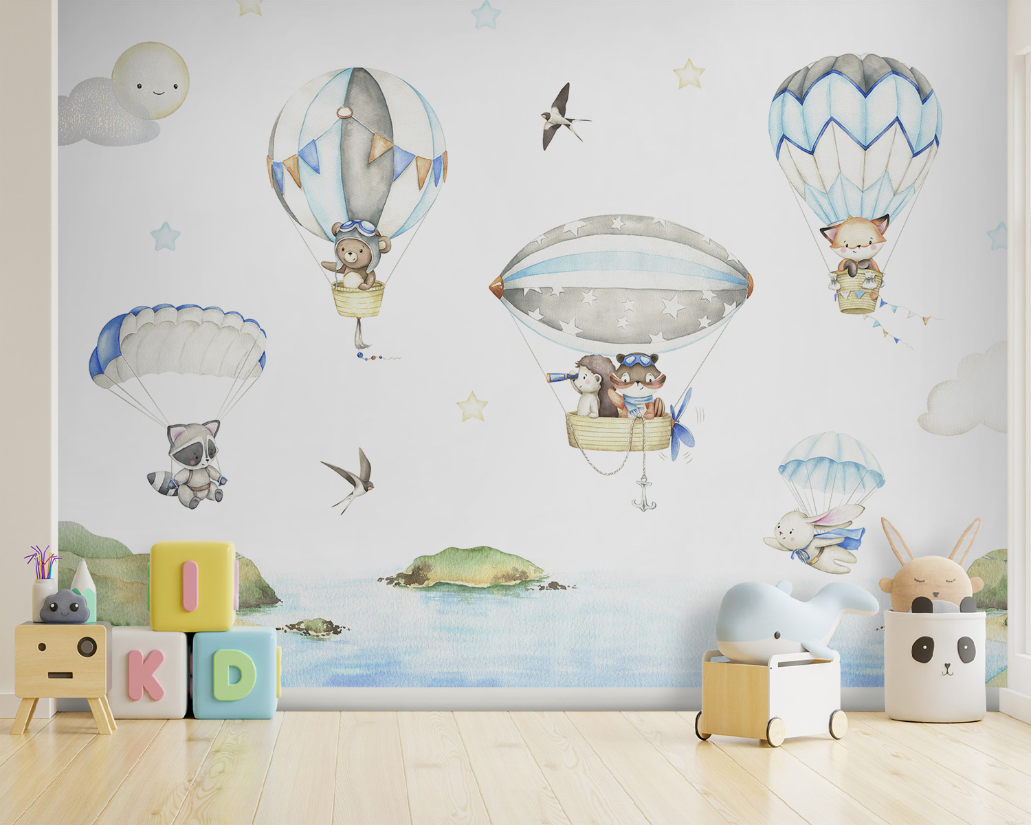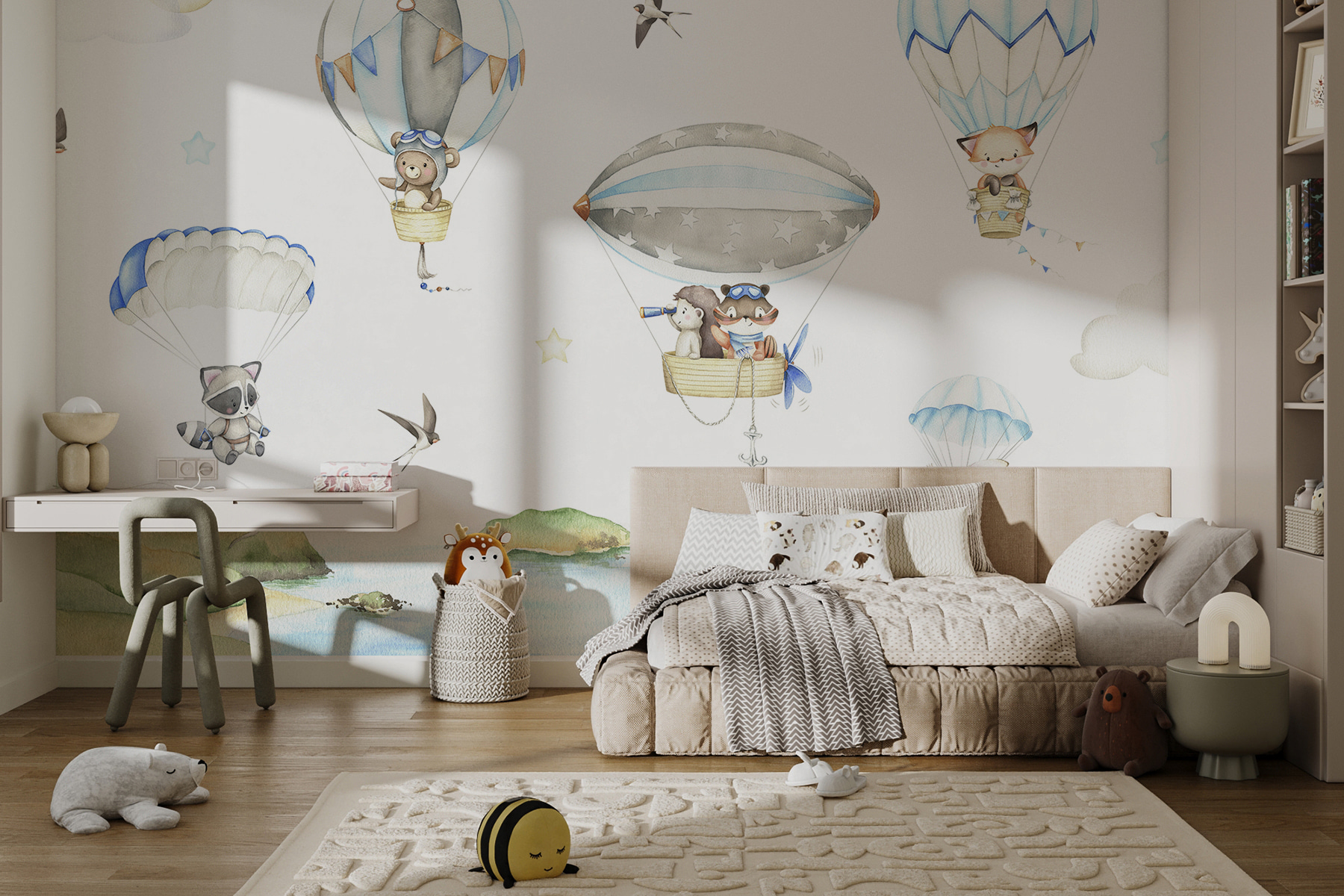 Porquê contentar-se com paredes simples quando pode levar o seu filho numa aventura com este adorável mural de parede? “Urso de peluche num balão de ar quente” é demasiado bonito para resistir. Imagine um doce ursinho de peluche, com óculos de aviador, a flutuar suavemente no céu. O encanto desta cena de sonho é perfeito para despertar histórias intermináveis e acalmar os sonhos noturnos. Perfeita para berçários ou quartos de crianças, acrescenta um toque lúdico que é seguro e suave para os olhos. A sério, quem não gostaria de acordar com isto todas as manhãs? É como se tivesse entrado num livro ilustrado onde cada dia é uma nova aventura no céu. Os tons pastel suaves e as personagens extravagantes garantem que não é apenas um atrativo para os olhos, mas também um fator de mudança de humor. O quarto do seu filho transforma-se instantaneamente num refúgio mágico e acolhedor, onde os balões de ar quente e os sonhos altos ganham vida.