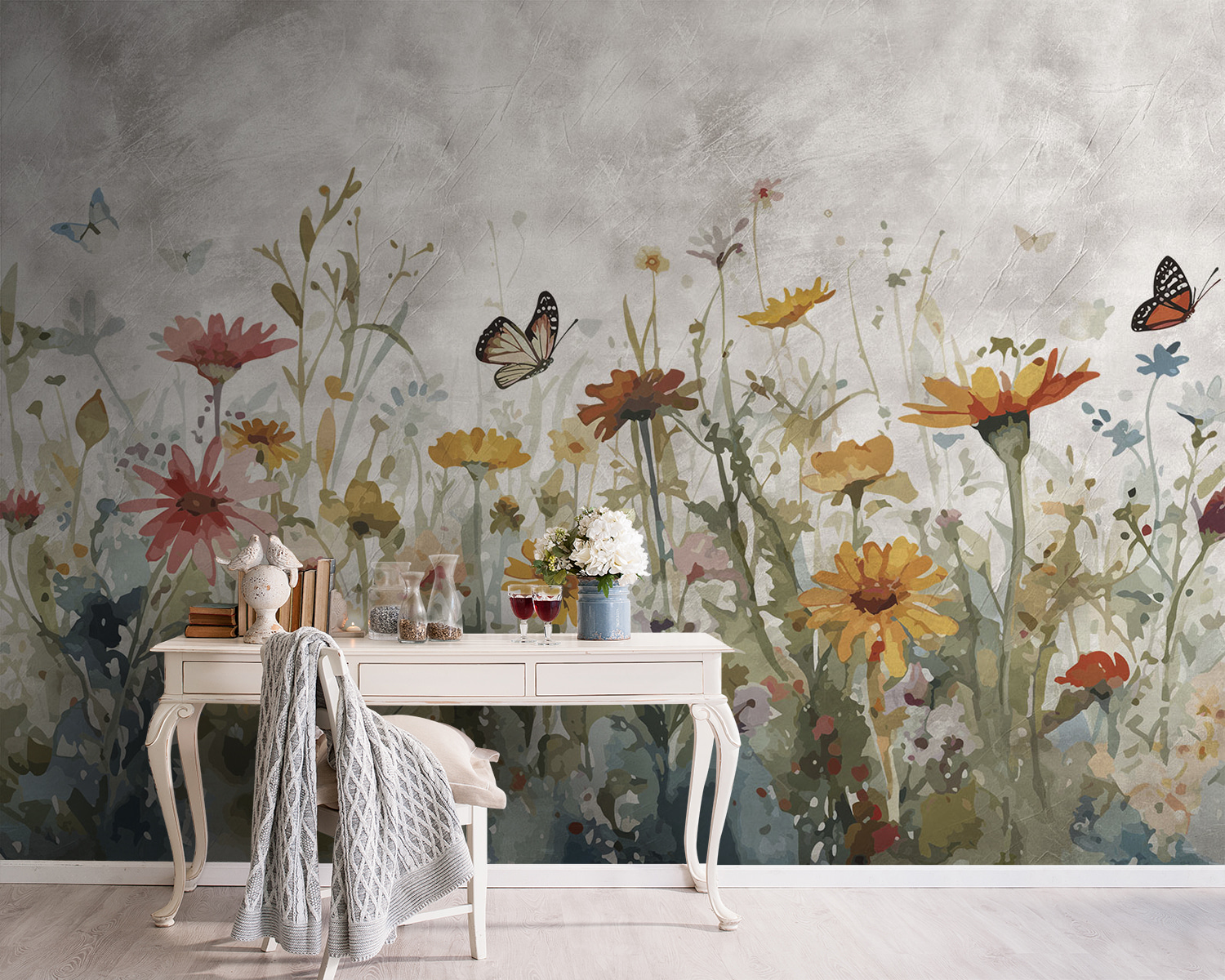 Apetece-lhe dar um toque especial ao seu espaço? Veja este mural de parede encantador, “Borboletas dançam sobre um prado colorido”. É como se alguém tivesse engarrafado a alegria de um dia de sol num campo de flores silvestres e a tivesse espalhado na sua parede! As borboletas à deriva por cima de flores brilhantes são pura felicidade em exposição – perfeito para quem precisa de um pouco da magia da natureza na sua vida interior.