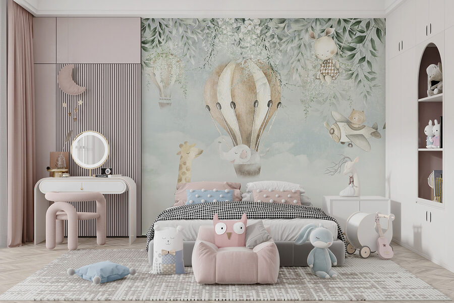 Alguma vez sonhou em trazer uma cena caprichosa e sonhadora para o quarto do seu filho? Esta “Pintura de Murais de Parede de um coelho num baloiço” vai certamente fazer o truque. Imagine os olhos do seu filho a brilharem ao ver o adorável coelho a baloiçar suavemente entre verdes suaves e pequenos detalhes encantadores. Até há um balão de ar quente e outras personagens encantadoras!