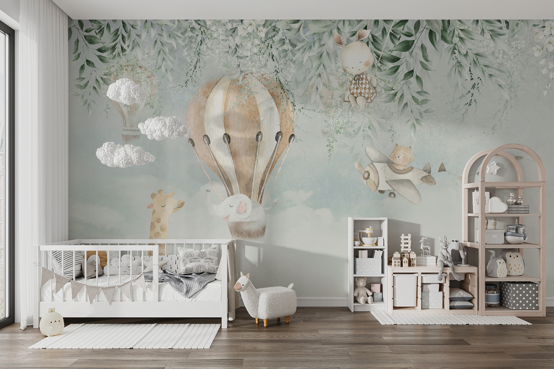 Alguma vez sonhou em trazer uma cena caprichosa e sonhadora para o quarto do seu filho? Esta “Pintura de Murais de Parede de um coelho num baloiço” vai certamente fazer o truque. Imagine os olhos do seu filho a brilharem ao ver o adorável coelho a baloiçar suavemente entre verdes suaves e pequenos detalhes encantadores. Até há um balão de ar quente e outras personagens encantadoras!