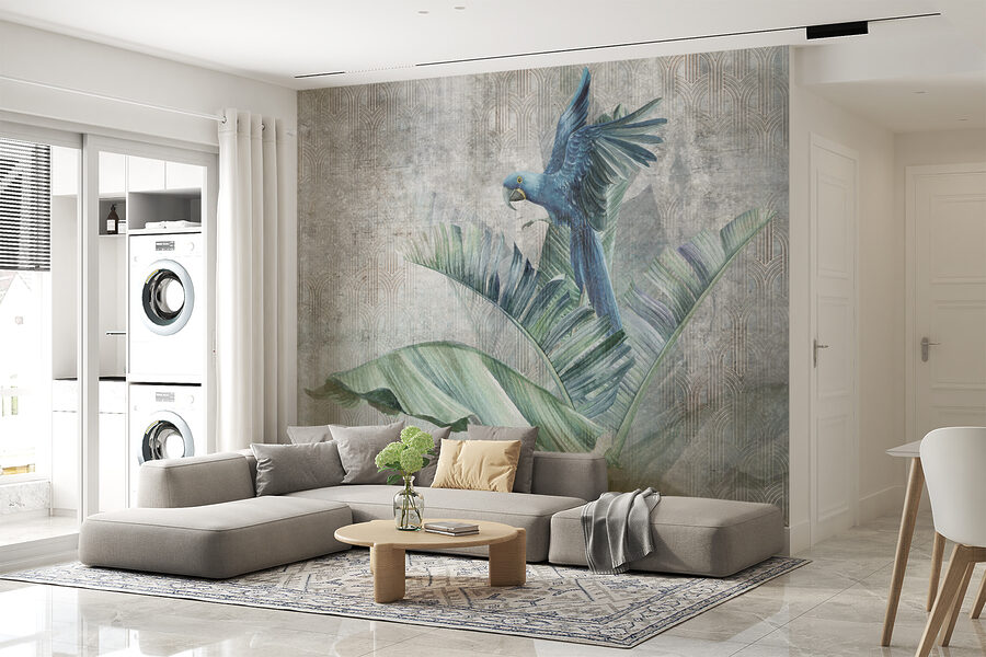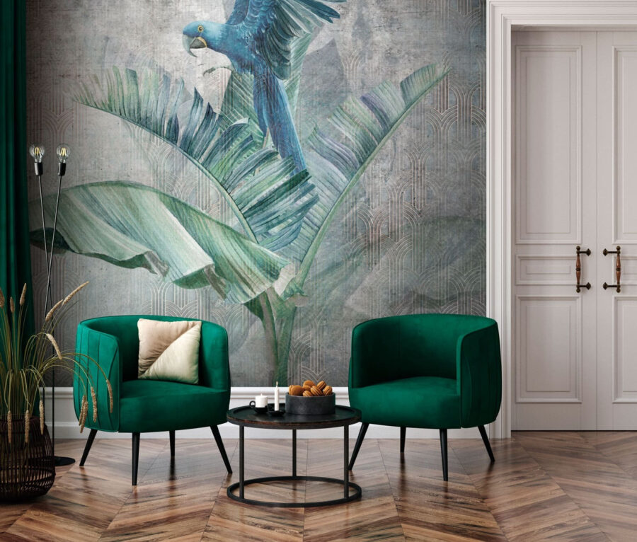 Imagine entrar na sua sala de estar e ser saudado por um deslumbrante papagaio azul empoleirado em ramos exuberantes e frondosos. Este mural de parede é mais do que apenas decoração – é uma fuga tropical. O azul vibrante do papagaio aparece contra um pano de fundo de verdes suaves, fazendo com que o seu espaço se sinta como um oásis de floresta tropical. É perfeito para quem adora pássaros ou apenas precisa de um pouco mais de natureza na sua vida. Imagine-o na sua sala de jantar, acrescentando uma vibração fresca ao seu café da manhã ou aos convidados do jantar, elogiando o seu estilo único. Além disso, tem o toque certo de elegância com aquelas folhas de palmeira a emoldurar a cena. Porquê contentar-se com paredes simples quando pode ter uma obra de arte que o transporta para um paraíso tropical todos os dias?