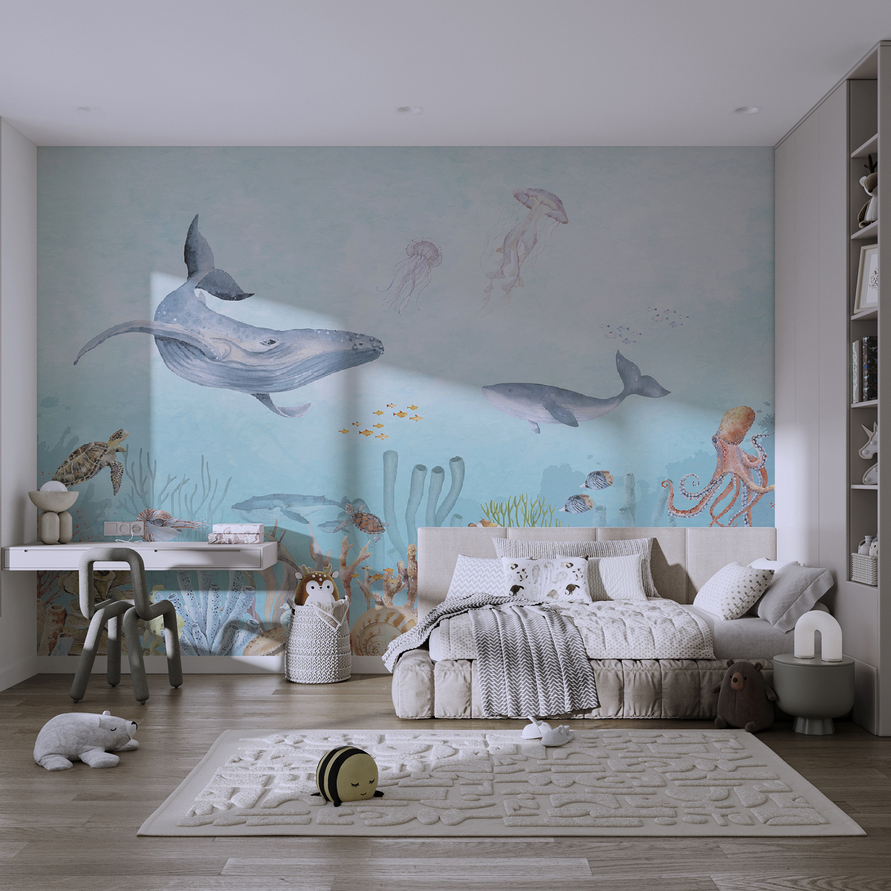 Mergulhe num mar de maravilhas com este cativante mural de parede “Underwater Life”! Imagine transformar uma sala simples num paraíso oceânico repleto de criaturas marinhas divertidas e recifes de coral vibrantes. Perfeito para despertar a imaginação de crianças e bebés, este mural traz a magia do azul profundo diretamente para a sua casa. Há aqui uma baleia gigante – e olha! Um pequeno grupo de peixes-palhaço a brincar às escondidas nas anémonas. Quer seja no berçário do seu filho ou numa casa de banho extravagante, acrescenta instantaneamente um toque de aventura e tranquilidade. Não consegue quase ouvir o suave murmúrio da água e o suave balançar dos tentáculos do polvo? Instale-o no seu espaço e veja os olhos arregalarem-se de prazer (e talvez uma ou duas risadinhas). É mais do que um mural, é uma escapadela subaquática sem se molhar – por isso, vá em frente, dê um mergulho!