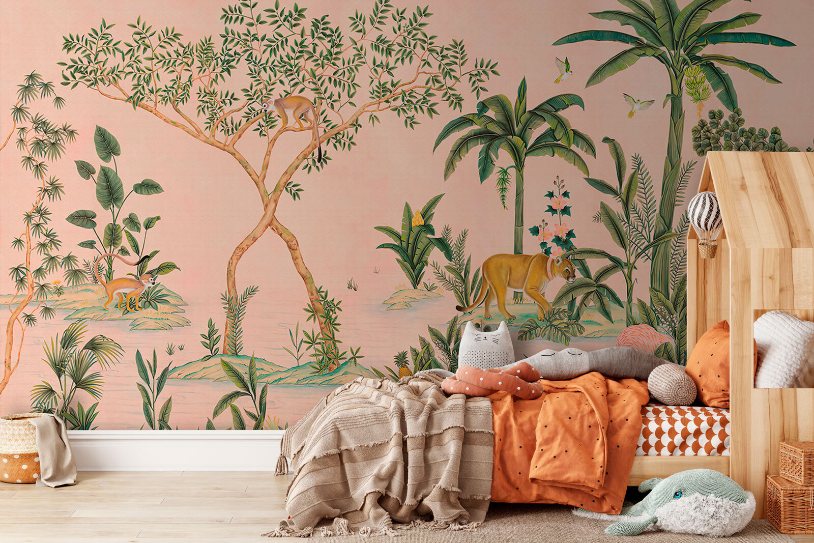 Perfeito para o quarto de uma filha ou de um filho, este mural dá a sensação de estar a entrar numa terra divertida de imaginação. Os tons vibrantes e o design extravagante despertarão a alegria e a criatividade. Trata-se de trazer uma fatia de felicidade para a vida quotidiana, fazendo com que qualquer divisão se sinta acolhedora e convidativa.