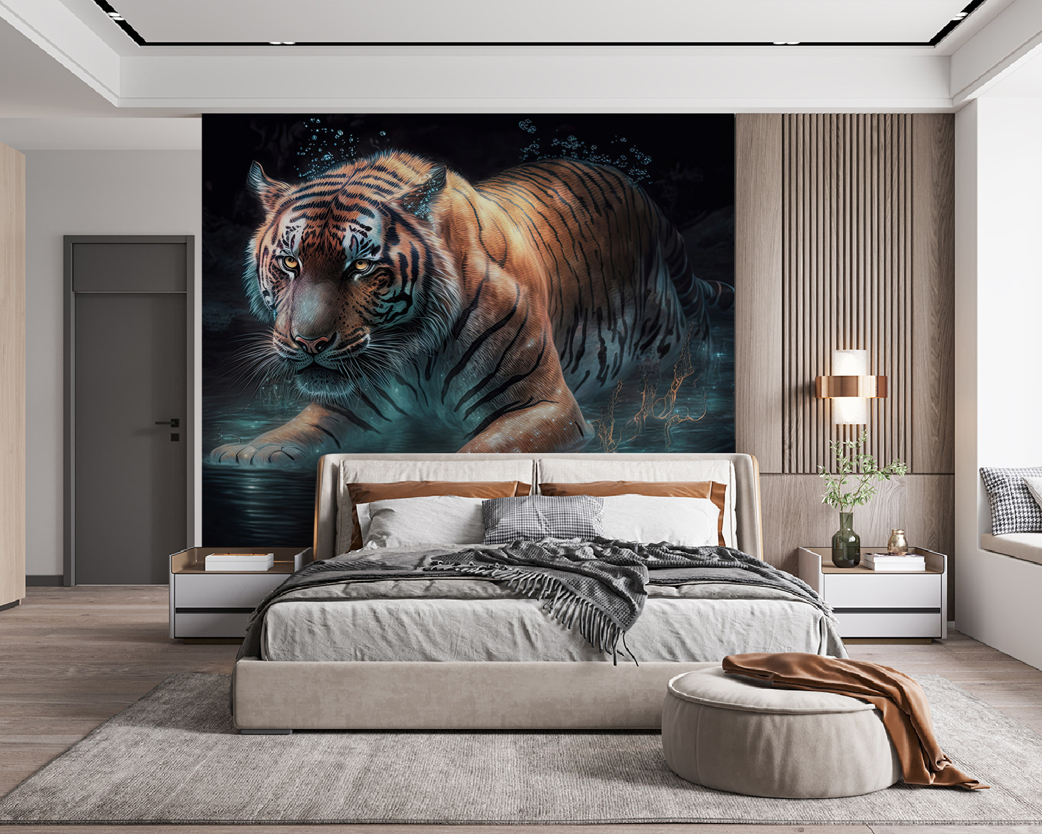 Imagine ter uma parede que literalmente ruge! Este mural “Tiger prowls silently through water” não é apenas uma obra de arte – é uma experiência completa. Imagine isto: um tigre deslumbrante, quase majestoso, com os olhos bem atentos e concentrados, a rondar a água mesmo na sua sala de estar. Os pormenores finos e as cores ricas fazem-nos sentir a alegria crua da selva. É como ter um predador sereno a guardar o seu espaço. Para além disso, é um fantástico início de conversa. Os seus convidados ficarão simplesmente fascinados. Perfeito para quem adora um toque selvagem e um toque de aventura na decoração da sua casa! 🐅