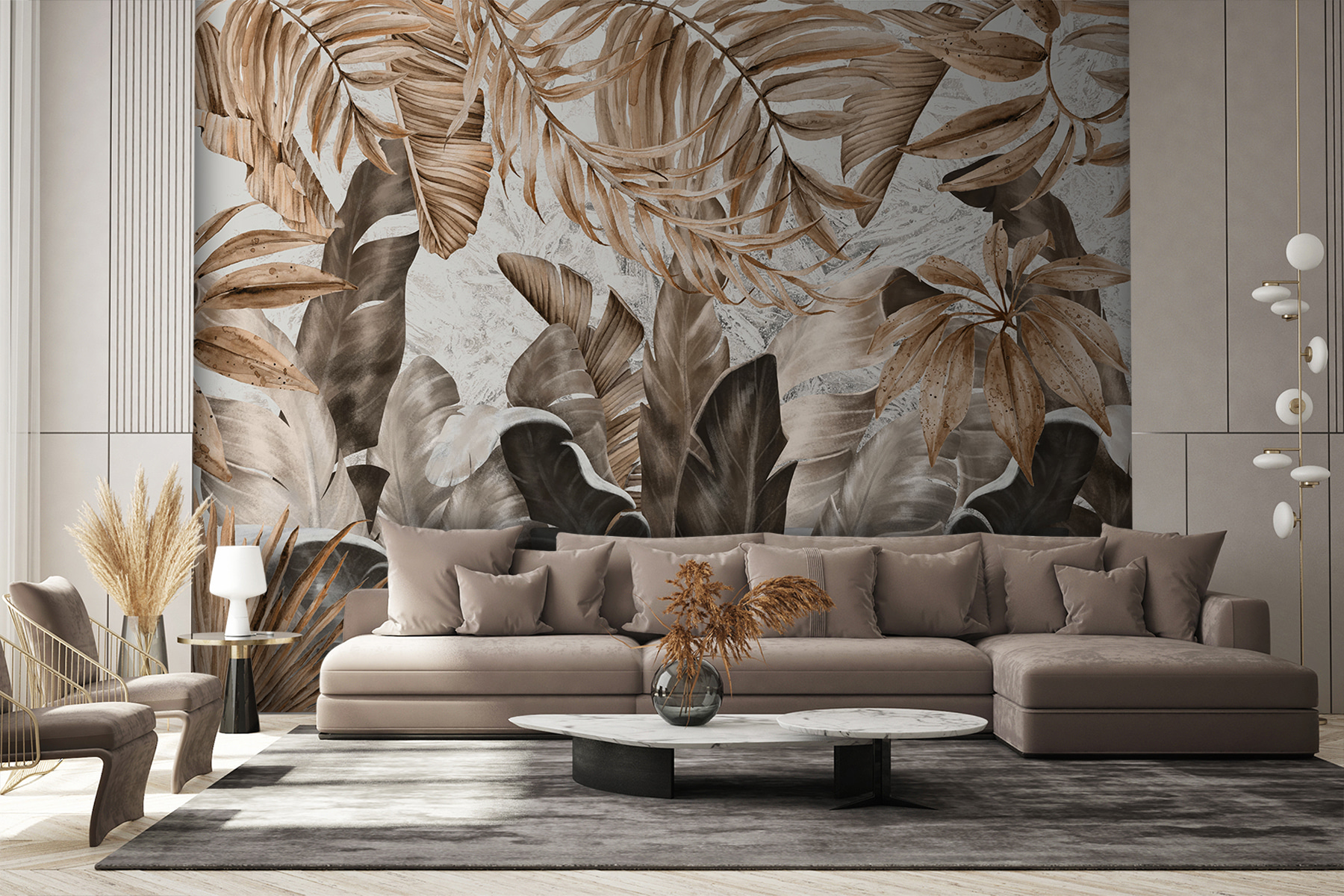 Imagine entrar na sua sala de estar e sentir-se como se tivesse sido transportado para um paraíso tropical sereno. Este mural de parede “Tropical Leaves in Earthy Tones” faz exatamente isso. Tem estas folhas espantosas e de grandes dimensões com tons ricos e terrosos que trazem um toque de natureza para dentro da sua casa. Este não é apenas um papel de parede da moda – é uma peça de afirmação, quase como ter uma peça gigante e bonita de arte moderna colada na sua parede.