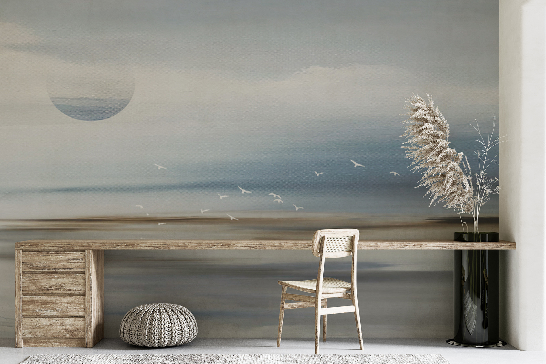 Imagine chegar a casa depois de um longo dia e sentir a calma instantânea de ver pássaros a voar graciosamente pelo céu, mesmo na sua sala de estar. Este mural “Grupo de pássaros a voar no céu” é como o abraço suave da natureza na sua parede – uma fatia de serenidade com um toque de movimento que faz com que qualquer espaço se sinta mais vivo. Está no ponto ideal entre a arte abstrata e uma vibração costeira, o que o torna perfeito para quem adora o mar mas também é um pouco sonhador. Imagine isto: está a beber o seu chá preferido, a sonhar acordado enquanto os pássaros balançam ao sabor da brisa. As pinceladas suaves e abstractas quase o fazem sentir a brisa fresca contra a sua pele, transportando-o para uma costa tranquila onde as preocupações se dissipam. Seria fantástico num recanto de leitura, num quarto ou, na verdade, em qualquer lugar onde se queira uma pequena fuga mental. Este mural é mais do que uma simples decoração – é um estado de espírito, um sentimento, um pequeno retiro do caos da vida quotidiana.