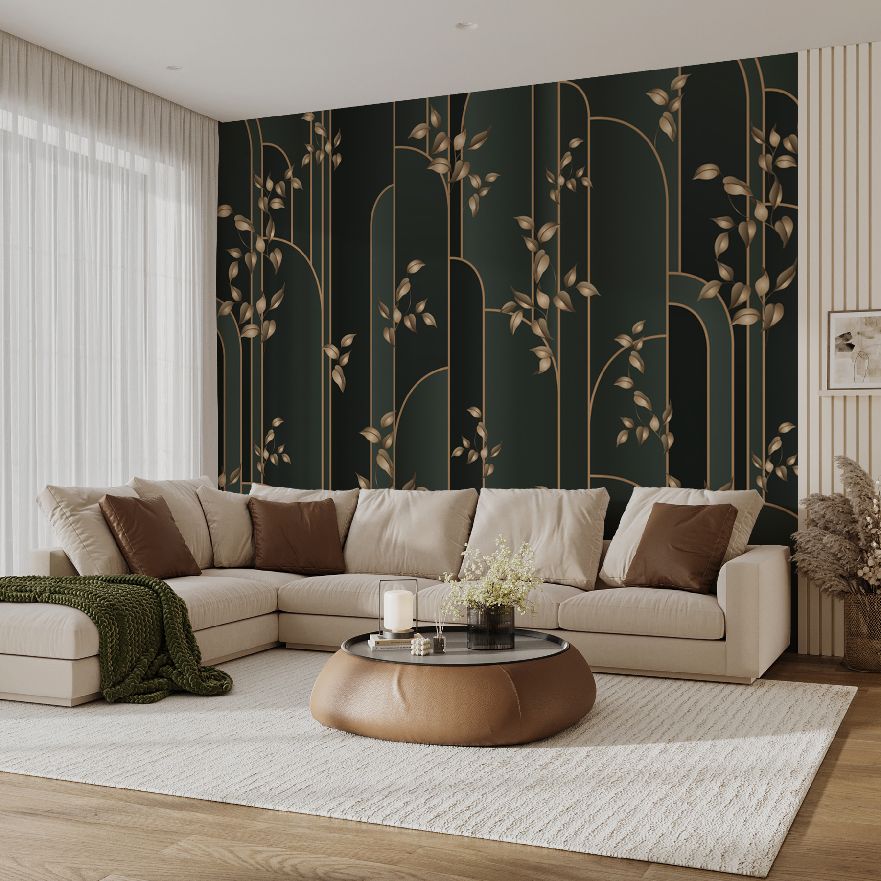 Transforme qualquer divisão num oásis acolhedor com este mural que apresenta folhas elegantes num cenário de riscas escuras. É como trazer uma floresta serena diretamente para a sua casa – sem necessidade de botas de caminhada! Imagine isto: entrar numa sala de estar ou num quarto que é ao mesmo tempo refrescante e sofisticado. O design frondoso acrescenta um toque de natureza sem a confusão, e o fundo rico faz com que os pormenores se destaquem. Os amigos vão perguntar-se se tem um jardim secreto escondido. Perfeito para quem procura dar um toque de estilo e um pouco de calma ao seu espaço!