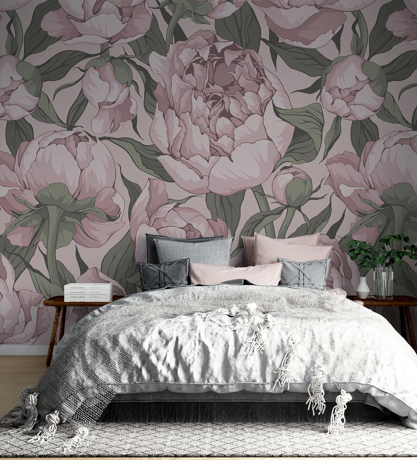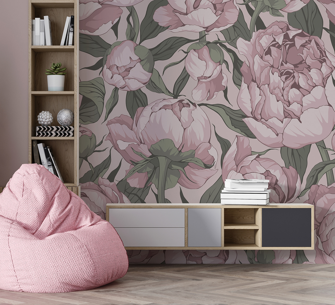 Sonhador, alerta de charme vintage! Este mural de parede “Vintage Pink Peony Floral Pattern” é pura elegância. Pense no seu quarto a sentir-se instantaneamente como um jardim acolhedor e florido. As peónias cor-de-rosa suaves são exuberantes, quase como se pudesse estender a mão e tocar nas suas pétalas. Perfeitas para dar um toque floral a uma sala de estar, a um quarto ou até mesmo a um bonito café. Imagine acordar com isto todos os dias – é como um abraço suave da natureza. Além disso, as peónias simbolizam o romance e a prosperidade. Por isso, não só é linda, como também tem boas vibrações!