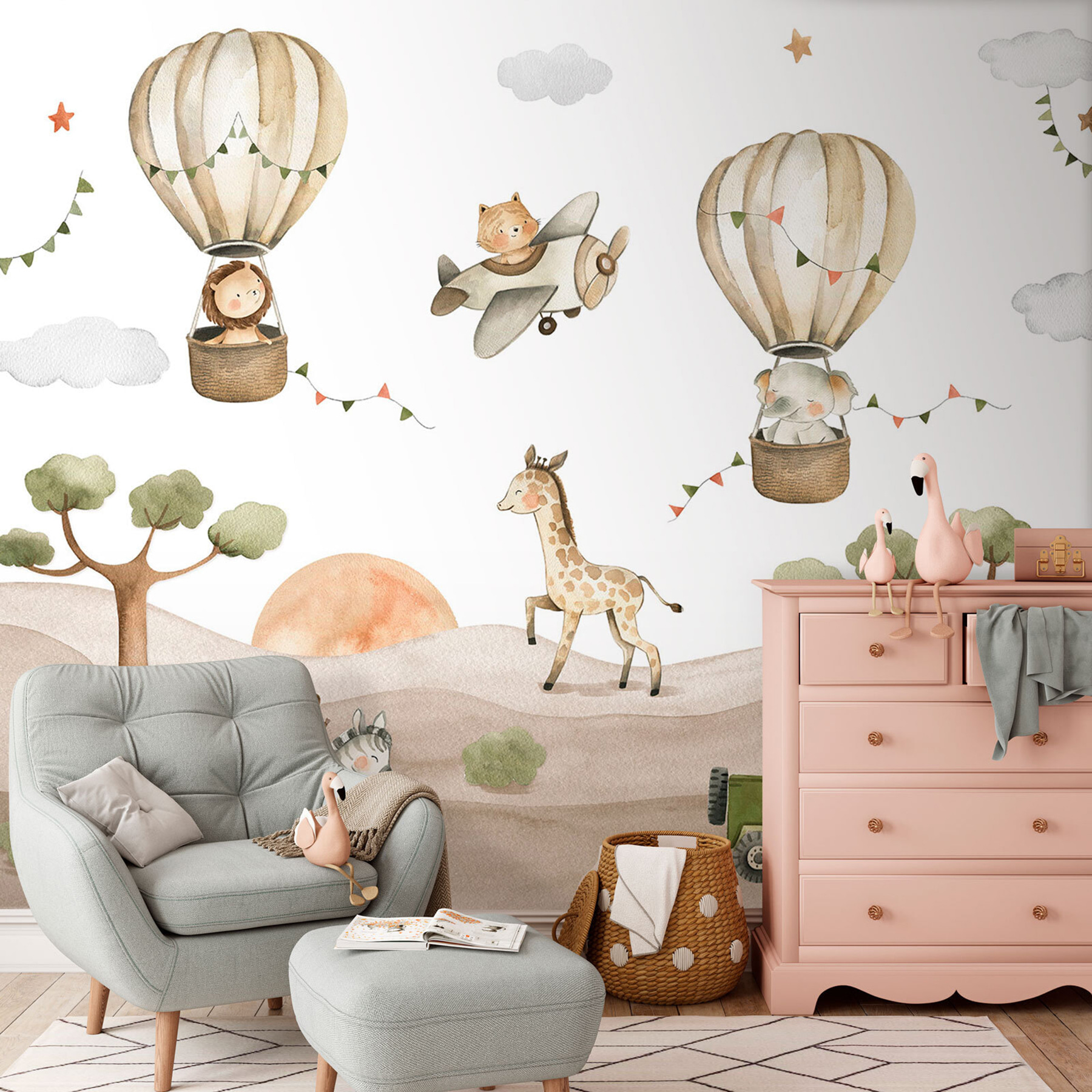 Muito bem, vejam isto – um mural de parede chamado “Macaco a cavalgar uma zebra”! Perfeito para o quarto do seu pequeno explorador, quer ele goste de animais ou tenha apenas uma imaginação selvagem. Imagine isto: um macaco a montar alegremente uma zebra através de uma paisagem caprichosa que parece saída de uma história de embalar. Balões de ar quente, uma girafa brincalhona e um jipe simpático completam esta cena adorável. Imagine o seu filho a acordar com isto todas as manhãs, sentindo-se como se estivesse numa aventura sem fim. Não se trata apenas de arte de parede, é uma faísca para contar histórias e sonhar acordado. Não é fixe? Este mural é um sucesso para qualquer quarto de criança, tornando o seu espaço divertido e muito único. Quem diria que decorar podia ser tão agradável?