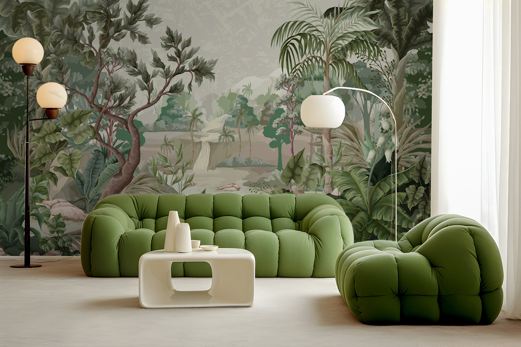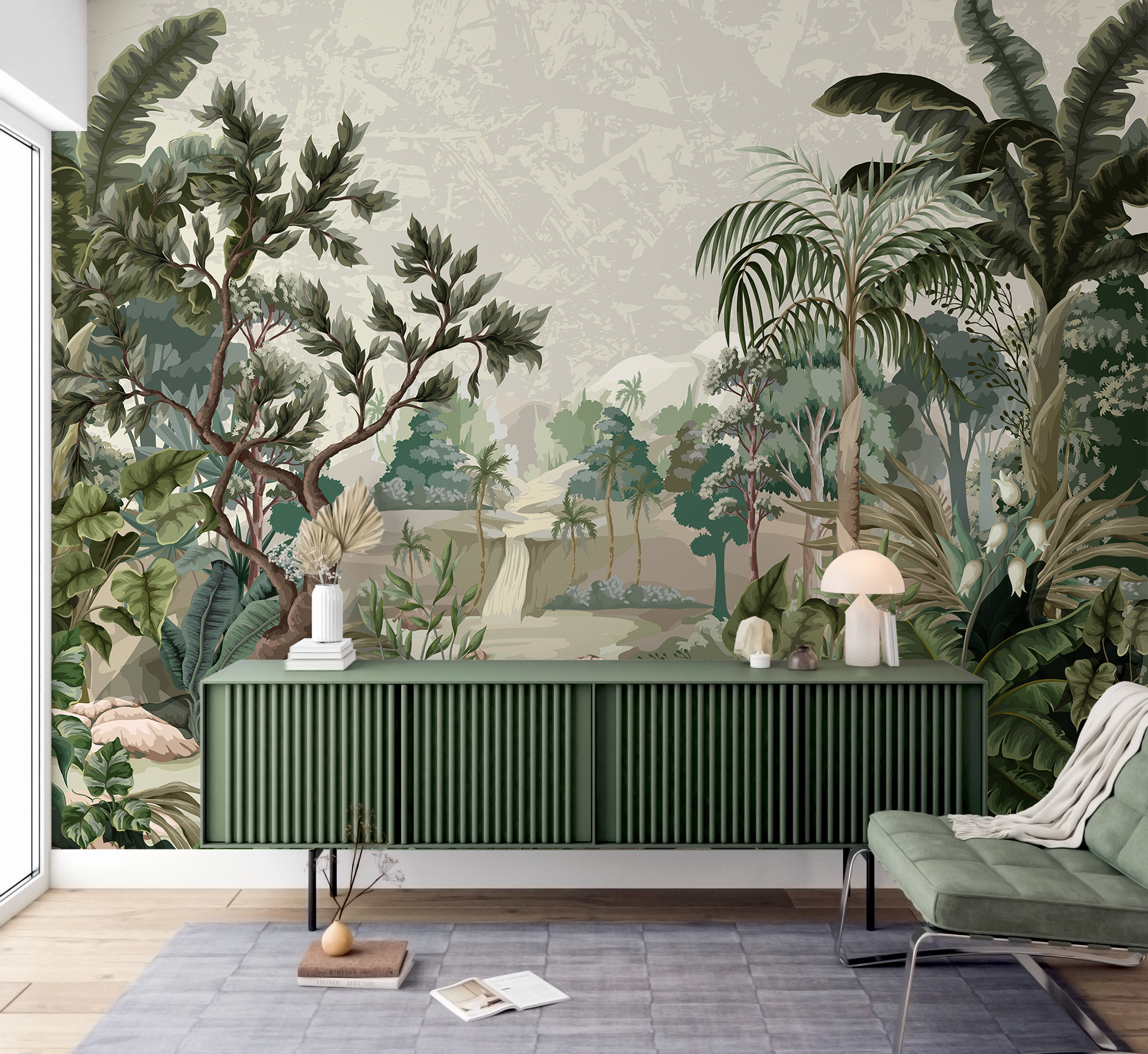 Imagine-se a relaxar em casa, olhar para o lado e – voilá, um cenário exuberante de selva tropical com uma cascata mesmo ali na sua parede. É como uma mini-fuga sem ter de fazer a mala. Este mural está aninhado entre os papéis de parede de Designer, mas também é um queridinho da multidão de Murais de Parede de Árvores da Selva e até se juntou ao grupo de Murais de Parede da Floresta Mágica. Os verdes são tão vibrantes que pode jurar que ouve o chilrear dos pássaros e a água a correr. Perfeito para animar qualquer espaço, desde salas de estar aborrecidas a cafés peculiares. Esta peça não se limita a preencher o espaço – transforma-o num refúgio mágico e relaxante. Envolva-se na beleza selvagem da natureza, a poucos passos de distância do caos quotidiano.