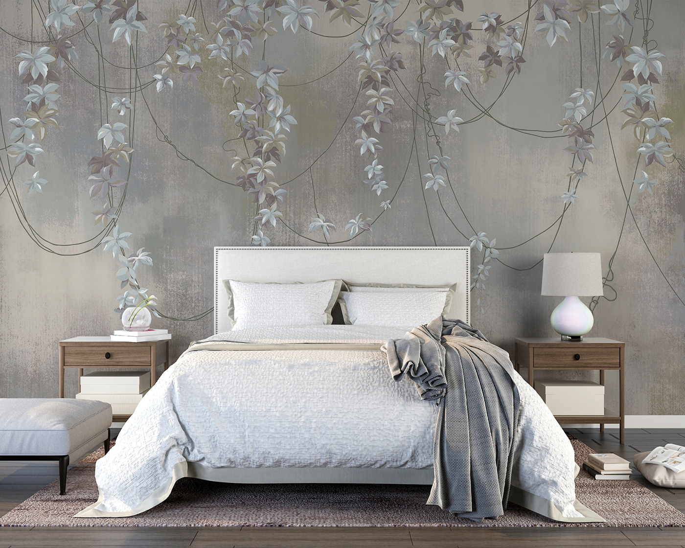 Imagine entrar numa sala e ser recebido por este mural – “Vinhas delicadas e flores suaves entrelaçadas”. É como entrar num jardim secreto. A forma como as videiras parecem cair suavemente em cascata pela parede, entrelaçadas com flores suaves, dá uma vibração tão relaxante. Perfeito para um quarto ou para um canto de leitura acolhedor, parece quase mágico. Pode dar por si a sonhar acordado com tardes de sol e jardins arejados sempre que olha para ele. É subtil, mas tão encantador, como se fosse um sussurro da primavera durante todo o ano. Simplesmente lindo.