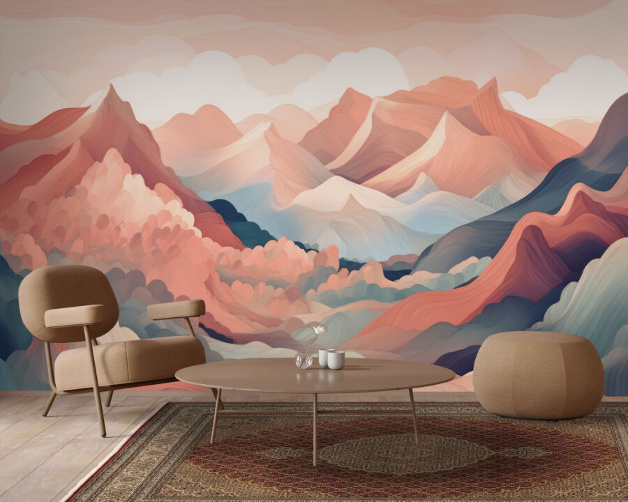 Sente que as suas paredes precisam de uma explosão de vida? Veja este mural de parede “Pintura de Paisagem de Montanha Colorida”! Não se trata apenas de uma decoração típica – estamos a falar de uma aventura para os seus sentidos, mesmo na sua sala de estar. Imagine-se a descansar no seu sofá, a olhar para os picos em tons pastel e desenhos em espiral que praticamente o convidam a sonhar acordado. É como uma mini-viagem a uma terra longínqua sem sair de casa.