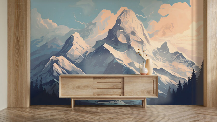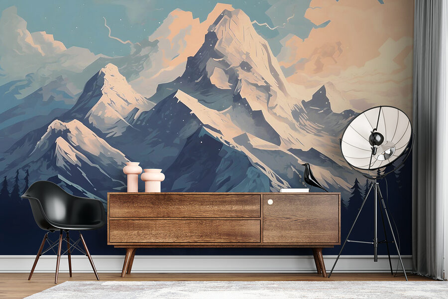 Imagine entrar numa cabana acolhedora, com o cheiro a pinho no ar, e lá está ele – o mural de montanhas imponentes envoltas em cobertores de neve e nuvens fofas. Esta peça não é apenas um pano de fundo; é um convite para sonhar acordado com as manhãs alpinas e as aventuras que o esperam mesmo à sua porta. Imagine-se a beber um cacau quente enquanto o mundo lá fora está coberto de branco e tudo o que vê são estes picos majestosos. Perfeito para uma sala de estar ou um recanto de leitura, este mural traz o ar livre para dentro, fazendo com que cada olhar pareça uma mini-fuga. Perfeito para aqueles que anseiam por um toque de majestade da natureza sem o congelamento!