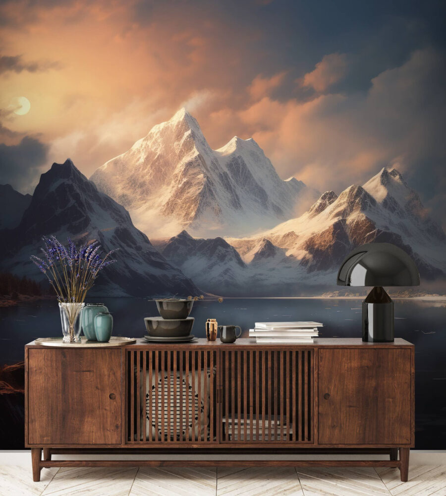 Imagine entrar numa sala e sentir instantaneamente o frio de uma brisa de montanha nevada, mesmo na sua própria casa. Este mural “Cordilheira de neve com nuvens” é como ter uma janela para as majestosas Montanhas Rochosas (menos o frio). As montanhas são tão nítidas e dramáticas que praticamente contam uma história. Perfeito para dar um toque de magia da montanha a qualquer espaço – um pouco como umas mini-férias de cada vez que passa por elas. Quer seja um amante dos grandes espaços ao ar livre, ou apenas precise de um cenário deslumbrante para os seus serões acolhedores, este mural vai fazer com que o seu espaço se destaque e proporcionar uma fuga serena.