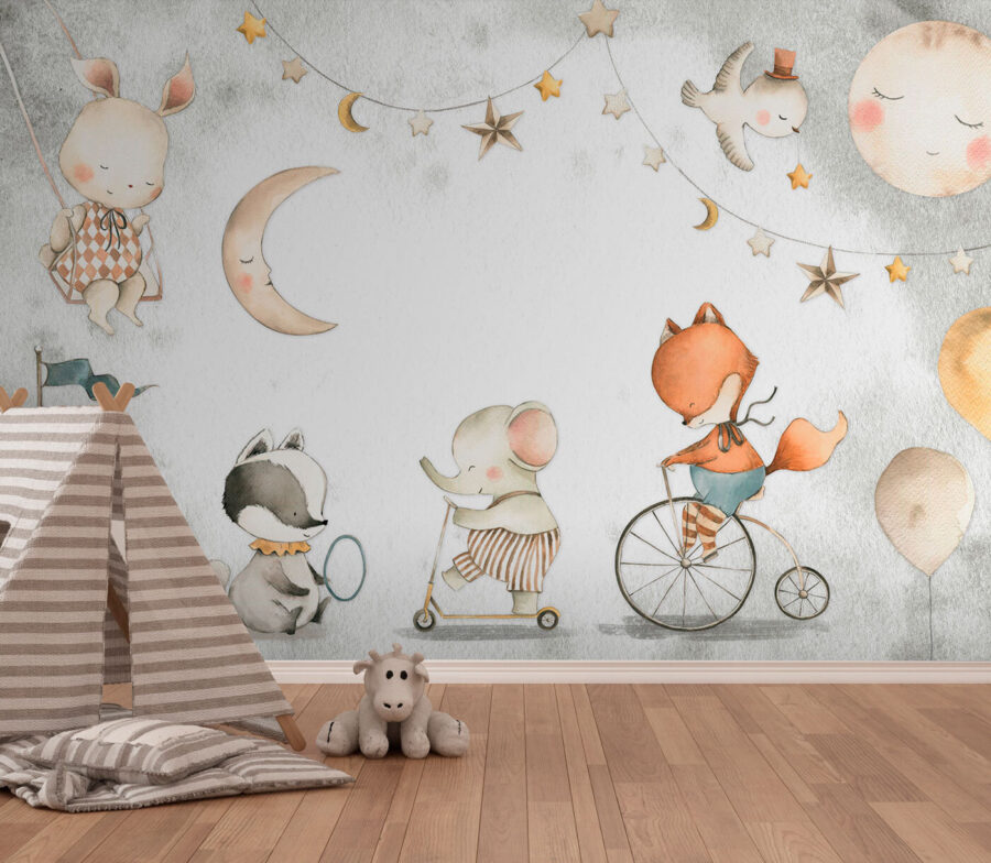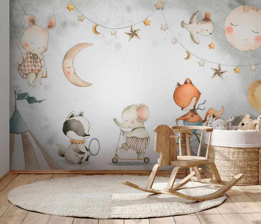 Transforme o quarto do seu filho num país das maravilhas caprichoso com o mural de parede “Playful Animals at the Circus Carnival”. Esta impressão encantadora leva-o para um carnaval acolhedor e sonhador, onde animais encantadores brincam e se divertem sob um céu estrelado. Perfeito para dar um toque de magia aos quartos ou áreas de lazer, apresenta um coelhinho doce, uma raposa brincalhona e outros amigos adoráveis que se divertem em vários passeios de carnaval. Vai adorar ver o rosto do seu filho iluminar-se à medida que descobre as cenas encantadoras. Não se trata apenas de uma decoração de parede; é uma dose diária de alegria. Imagine histórias para adormecer com este pano de fundo – pura magia!