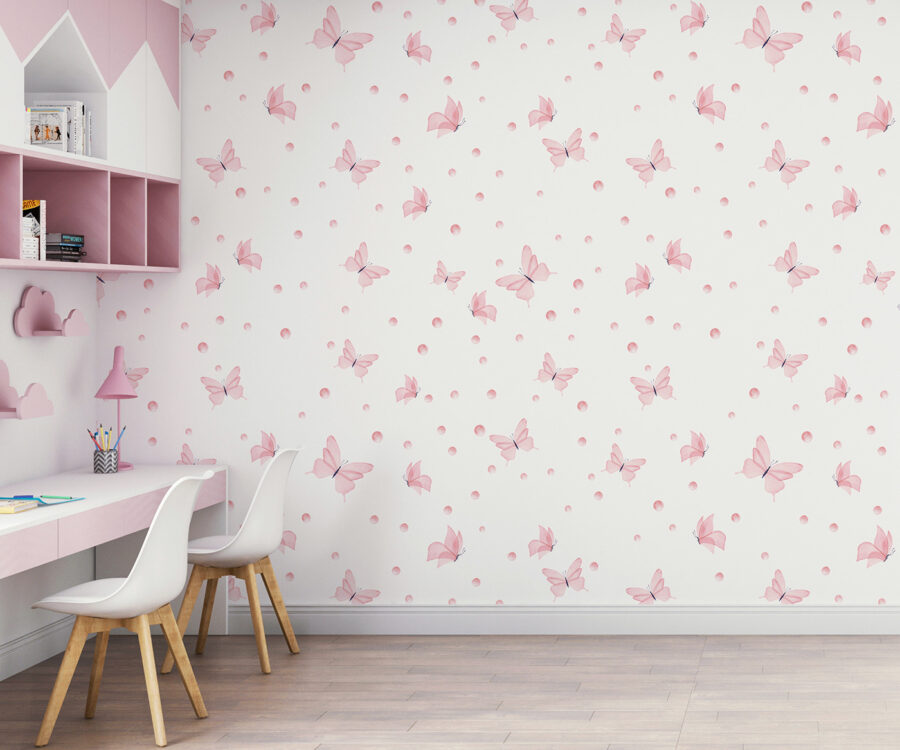 Tem aquele equilíbrio encantador – elegante mas divertido. O rosa pastel suave é calmante, sabe? Além disso, os detalhes em preto acrescentam contraste suficiente para manter as coisas interessantes. É um dos favoritos de todos, desde recém-nascidos a adolescentes, e até mesmo de adultos que gostam de uma decoração de sonho. Por isso, se as suas paredes estão um pouco aborrecidas, vamos dar-lhes algumas asas! 🦋