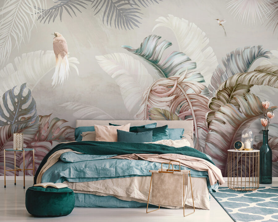 Imagine entrar num paraíso tropical sempre que entra no seu quarto. Este mural de parede de pássaros vibrantes rodeados por uma folhagem exuberante faz exatamente isso! Traz uma fatia da natureza diretamente para a sua casa, transformando qualquer parede sem graça num refúgio exótico. Imagine-se a beber café enquanto admira estes pássaros coloridos, quase desejando que cantem uma ou duas melodias. Perfeito para salas de estar, quartos ou locais onde a inspiração voa. Quem precisa de férias quando tem este cenário deslumbrante que o convida a relaxar e a descontrair em casa? Um toque simples que conta uma história e anima todos os cantos!